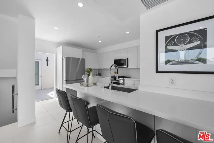 In addition to the 1,691 square feet of interior living space, this residence boasts more than 1,030 square feet of private outdoor terraces! Welcome to THE TITANIUM, Unit 3 – Rhodium, is a stunning three-story penthouse and a truly one-of-a-kind architectural gem perched atop a boutique four-unit building just moments from the iconic Melrose Place. More than just a home, this unique residence is a livable art piece that simply cannot be replicated. The thoughtfully designed outdoor areas include a spacious terrace extending from the living room, a shared terrace connecting both primary suites, and a third terrace conveniently located just off the kitchen, perfect for indoor-outdoor living and entertaining. The residence also boasts exclusive access to a private rooftop retreat, offering additional ample space to entertain while taking in panoramic 360-degree views of Los Angeles, from the hills to the skyline. Inside, the bright and open layout is thoughtfully designed with seamless indoor-outdoor flow, creating an elevated and expansive living experience. The home features two matching primary suites, each with direct access to the terrace previously mentioned, ideal for a private gym, lounge, or flexible outdoor retreat. Additional highlights include two side-by-side parking spaces in a secure garage and direct elevator access for ultimate privacy and convenience. Set in one of LA’s most coveted neighborhoods, surrounded by world-class shopping, dining, and design destinations, this rare penthouse stands alone in style, location, and creative spirit. A singular West Hollywood retreat not to be missed.