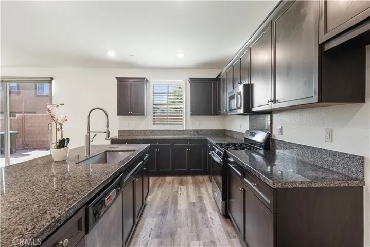 Beautiful home in one of Fontana’s most desirable new communities! Enjoy Stunning unobstructed mountain views from the living room, kitchen, backyard, and upstairs bedrooms. This home offers an open floor plan with a spacious living and dining area, modern kitchen with large island and walk-in pantry, and a downstairs bedroom with full bath—perfect for guests.