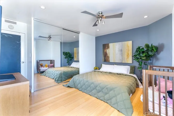 Welcome to this stylish mid-century modern condo in the heart of Downtown Long Beach! Located in the iconic Royal Palms building, this 2-bedroom, 1-bath residence offers 820 sq. ft. of thoughtfully designed living space with sweeping city views and a peek-boo view of the Queen Mary through oversized windows that flood the home with natural light. This is a end unit with only one shared wall.