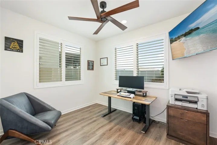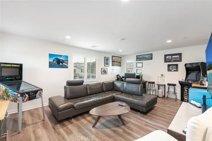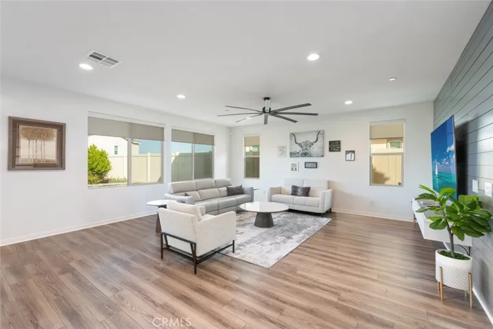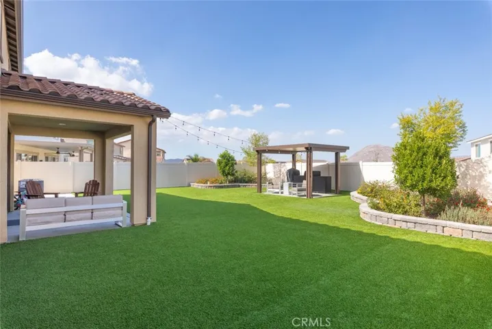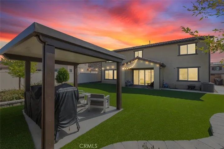 HUGE PRICE REDUCTION!! Put this one at the very top of your must-see list. This meticulously upgraded Tri-Pointe home offers 5 spacious bedrooms, 3.5 bathrooms, and 3,291 square feet of exceptional living space. Designed for those who appreciate quality, comfort, and modern elegance, this turnkey residence blends luxury finishes with thoughtful functionality at every turn. The open-concept floor plan is filled with natural light, highlighting the seamless flow of high-end luxury vinyl plank flooring throughout the home. Custom barn doors, shiplap accents, and designer ceiling fans in every room add warmth and character, creating a sense of refined sophistication. The gourmet kitchen is a showpiece in itself, featuring upgraded cabinetry with glass inserts, quartz countertops with stunning waterfall edges, a custom tile backsplash, and top-of-the-line stainless steel smart appliances. A farmhouse sink and a reverse osmosis water filtration system combine convenience with style, while the oversized island invites gatherings, casual meals, and conversations. Upstairs, the luxurious primary suite offers a private retreat designed to soothe and inspire. The spa-like bathroom features a freestanding soaking tub, a clear glass shower enclosure, and exquisite floor-to-ceiling tile work that rivals any high-end resort. The secondary bedrooms are generous in size, while the additional bathrooms echo the same sense of quality with quartz countertops, upgraded mirrors, and beautifully tiled flooring. The backyard continues the theme of luxury and functionality, offering a serene oasis perfect for both relaxation and entertaining. Designed for low maintenance with artificial turf, drought-tolerant plants, and raised garden planters. Beneath a durable metal-frame gazebo with electricity, the outdoor kitchen comes fully equipped with a smoker and pizza oven. The garage features epoxy flooring and a dedicated electrical subpanel with additional outlets. A whole-house fan and soft-water system enhance comfort and efficiency, while the paid-off solar panels offer eco-friendly living and significant energy savings. Perfectly situated near shopping, restaurants, award-winning schools, and the 215 and 15 freeways, this home combines the best of luxury, convenience, and modern design. Immaculate, move-in ready, and upgraded beyond expectations, this home stands out as a rare opportunity for those seeking true turnkey luxury—ready to welcome its next owner.