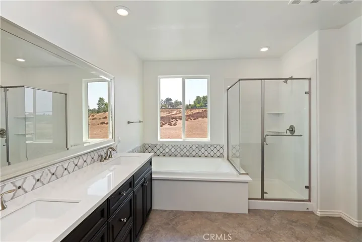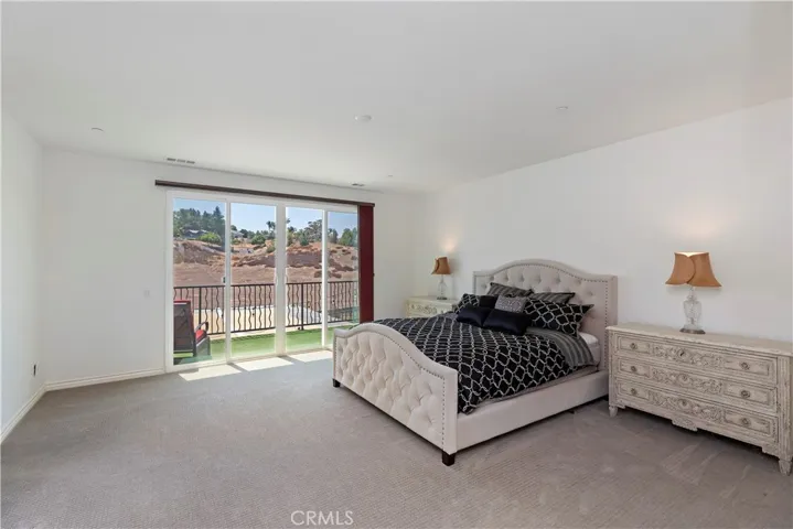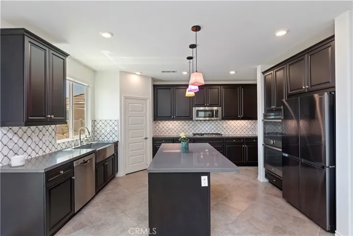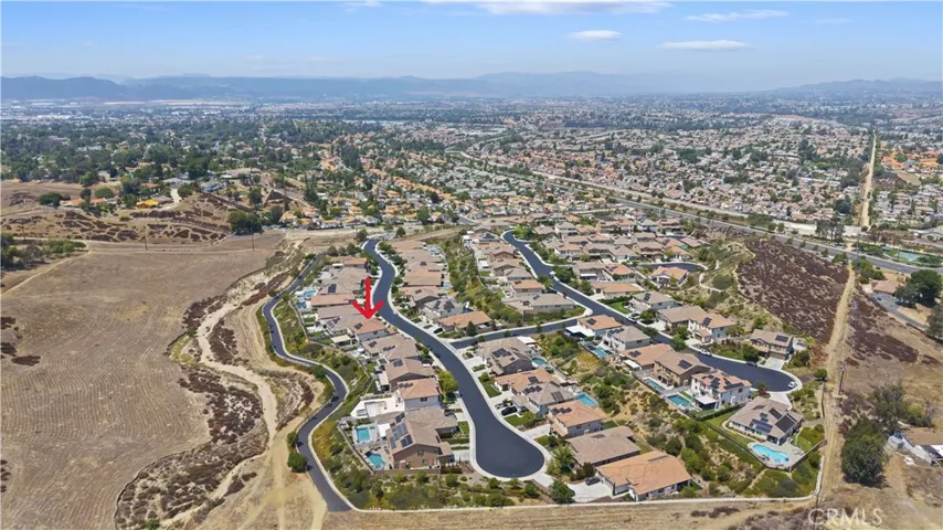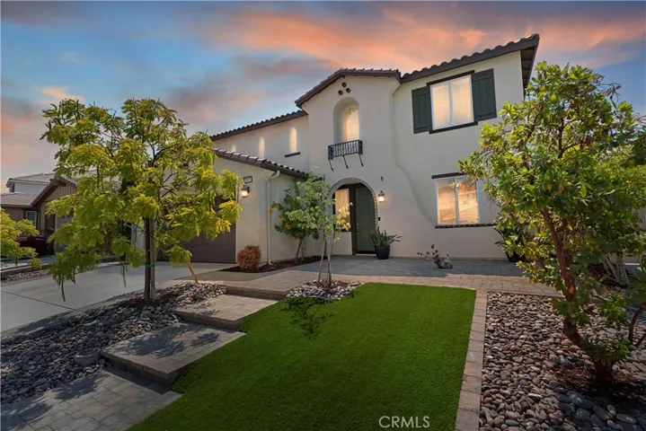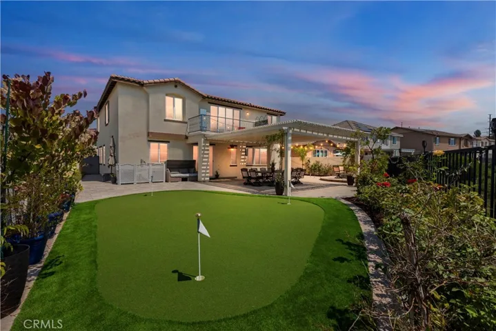 Welcome to this stunning home located in the highly desirable gated community of Nicolas Heights—a small, private enclave in the heart of Temecula offering both privacy and peace of mind. Built in 2019, this 3,648 sq ft residence showcases a sleek, modern layout and exceptional designer upgrades throughout, all set on a premium view lot with no rear neighbors and panoramic scenery that enhances everyday living. The curb appeal is undeniable, with wrought iron accents and fully finished front and back yards featuring eye-catching brick pavers and lush landscaping. Inside, you’ll find a light-filled open floor plan with elegant tile and wood flooring, plantation shutters, and brand new interior paint that gives the home a fresh, updated finish. The inviting kitchen is a showstopper, boasting a large quartz island, detailed stone backsplash, pendant lighting, GE Profile stainless steel appliances, a 5-burner stove, double oven, walk-in pantry, and Samsung refrigerator that stays. A butler’s pantry adds extra storage and convenience for hosting. The open-concept family room includes a custom fireplace, and a downstairs bedroom with full bath provides ideal flexibility for guests or multi-generational living. Wrought iron staircase railings lead to the second floor, where a spacious upstairs loft-style second living area offers plenty of room to relax, entertain, or create your ideal flex space. Three additional upstairs bedrooms are generously sized, and the secondary bathroom feature modern styling. The luxurious primary suite includes a large walk-in closet, dual sinks, vanity area, and sliding doors that open to a private balcony with wrought iron railing, where you can soak in the incredible views and peaceful ambiance. Step outside to your own backyard paradise—featuring a massive patio cover, raised fire pit seating area, a fun, low-maintenance putting green perfect for friendly competitions or practicing your short game, and a wrought iron view fence that frames the serene natural backdrop. Numerous potted plants also stay. Additional features include a 3-car garage with epoxy flooring and built-in cabinets, solar panels, washer and dryer included, and furniture and decor negotiable—a perfect opportunity for a turnkey purchase. This is a rare chance to own a luxurious, newer home with spectacular views in one of Temecula’s most exclusive gated communities—just minutes from top-rated schools, shopping, dining, and award-winning wineries.