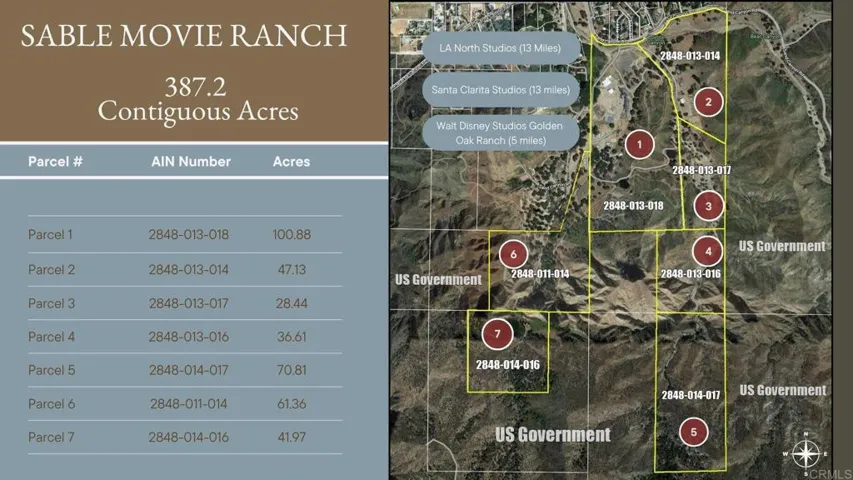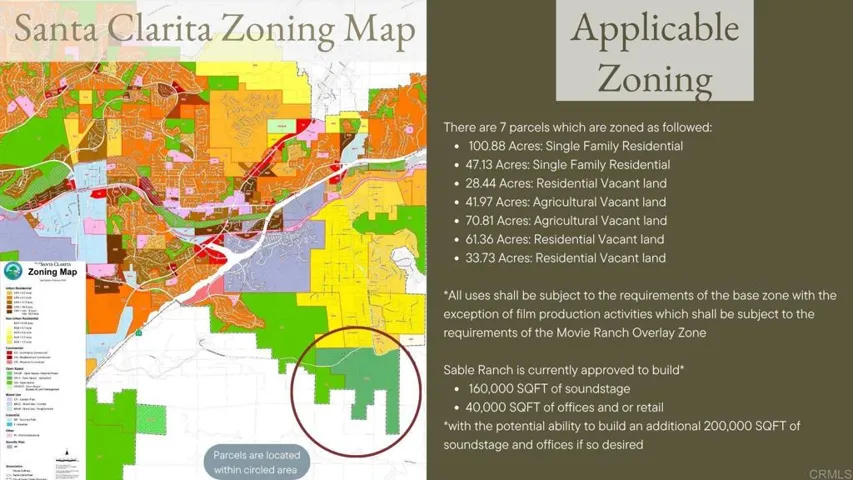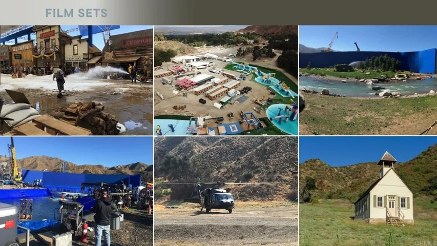 SABLE MOVIE RANCH ~ A Cinematic Legacy Iconic Movie Ranch Now Available after 3 Generations and 100 Years of Movie Making History 387.2 Acres (7) Contiguous APN’s Beautiful grassy meadows and canyons offer unique opportunities for location filming within the City of Santa Clarita. The city offers a three-part Film Incentive Program that subsidizes/ refunds basic permit fees for the CA Film & TV Tax Credit Program. Water, Mineral and Air Rights value yet to be determined and are fully transferrable. 30 MINUTES OR LESS FROM HOLLYWOOD Cast, Crew and creative staff are a short 30-minute reverse commute drive from DTLA or a 10 minute helicopter ride as Harrison arrived during the filming of Call of the Wild. (MOZ) THE MOVIE OVERLAY ZONE MOZ was created as a way to support existing entertainment industry businesses, attract new production companies to Santa Clarita, and encourage location and full service motion pictures and filming. $300M+ TAX CREDITS & INCENTIVES All acreage is controlled by the Santa Clarita Film Office, which creates production filming benefits from reduced bureaucracy, tax credits similar if not better than filming outside California, and also benefits reduced cost permits and expedited permit processing time. 10,000+ FEATURE FILMS Have been made at Sable Movie Ranch, not including the thousands of music videos and shows that have also been filmed on this location. Sample of Works Filmed at Sable Movie Ranch: FILMS Oppenheimer (2023), Top Gun: Maverick (2022), Once Upon a Time in Hollywood (2019), The Call of the Wild (2020), Iron Man (2008), Twilight (2008), Old Yeller (1957), Bells of Coronado (1950), Robinhood Men in Tights TV Miracle Workers (2019-2021), Bless this Mess (2019-2020), Modern Family (2009-2020), Wipeout (2008-2014), A Time to Remember (2003), Firefly (2002-2003) MUSIC VIDEOS Billie Ellish- Happier Than Ever, Beyoncé- Lemonade, Black Eyed Peas- BIG LOVE, Lady Gaga- John Wayne, Katy Perry – Chained to the Rhythm, Justin Timberlake – Man of the Woods, Machine Gun Kelly- The Gunner Reference Full List Here: https://filmsanta clarita.com/for-the-community/filmed -in-scv/ SABLE MOVIE RANCH is currently approved to build:* 160,000 SQFT of Soundstage 40,000 SQFT of Offices and or Retail * with the potential ability to build an additional 200,000 SQFT of soundstage and offices if so desired.