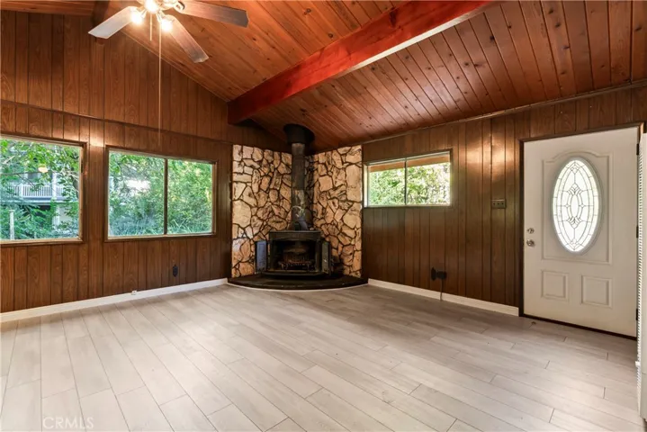 Discover this cozy 2-bedroom, 1-bath cabin style home in the heart of Lytle Creek. Surrounded by nature, this home features newer wood flooring, brand-new carpet in bedrooms and new interior paint. Enjoy the inviting fireplace and the peaceful sound of the creek running alongside the property. A private footbridge provides unique access to the home, while fruit trees and scenic views add to its charm. The home also features a tank and filtration water system (no well), providing reliable and clean water year-round. Sitting on a spacious lot, this property offers endless possibilities to build another unit, add a garage, or expand the existing home. With ample parking and room to grow, this rare creekside home combines rustic character with modern comfort and potential.