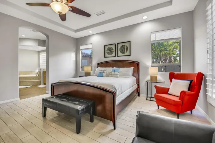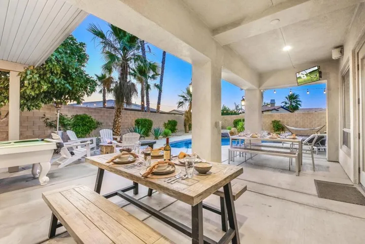 Turnkey Investor’s Dream in the Prestigious Montage at Santa Rosa Community.A high-performing short-term rental on an oversized ~0.30-acre lot at the end of a quiet cul-de-sac inside Montage at Santa Rosa – one of Indio’s most sought-after, permit-friendly gated neighborhoods. This property is already operating as a fully furnished, income-producing rental and has approximately $40,000 in booked revenue for April 2026 alone.The home features two true primary suites (dual primary bedrooms with ensuite baths), an expansive resort-style pool and spa, multiple outdoor game areas, and comes fully furnished, allowing guests to check in on day one.The large lot provides exceptional upside. The seller includes blueprints for a 3-car-garage + casita addition, which can expand the home to a 5-bed layout – mirroring other high-earning rentals in the community. There’s also space for an outdoor kitchen or ADU to further boost nightly rates and long-term value.Located in a luxury enclave where a neighboring property recently sold for $3.2 million, Montage homes command premium rates thanks to their rare walkable proximity to Coachella and Stagecoach festival grounds.A rare opportunity to acquire land, income, and expansion potential in one of the desert’s top-performing STR communities.Contact Mike Smith for a private showing and full financials.