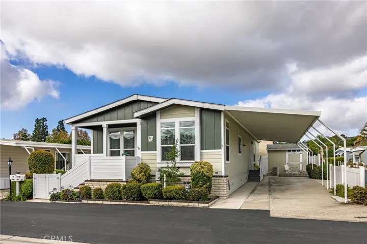 This beautifully crafted mobile home offers comfort, charm, and modern touches throughout. With 3 spacious bedrooms and 2 full bathrooms, there’s room for everyone. The open floor plan connects your living space to a chef-inspired kitchen, featuring a large island, elegant white countertops, premium appliances, and a whisper-quiet dishwasher that won’t interrupt your favorite show. Luxury vinyl plank floors run throughout, contrasting perfectly with the crisp, white cabinetry. The two guest bedrooms include custom closet systems to keep things tidy, while the roomy primary bedroom boasts a walk-in closet and a stylish en-suite bathroom with custom tile work. Ceiling fans are sprinkled throughout to keep you cool, and the central air conditioning takes care of the rest. With LED lighting, this home is both energy-conscious and well-lit for late-night snack missions. Step outside to a thoughtfully landscaped yard, complete with synthetic turf for low maintenance living, vinyl fencing for privacy, and a brick inlay patio that’s ready for backyard barbecues. The front deck offers stunning hillside views, perfect for morning coffee. Located on a corner lot with a large driveway and separate entry points, there’s even a custom shed with interior finishes for extra storage or a mancave. Nearby attractions include eco-friendly centers, local marketplaces, beautiful beaches, and historic sites, giving you access to nature, culture, and plenty of places to show off your new home to visiting friends.