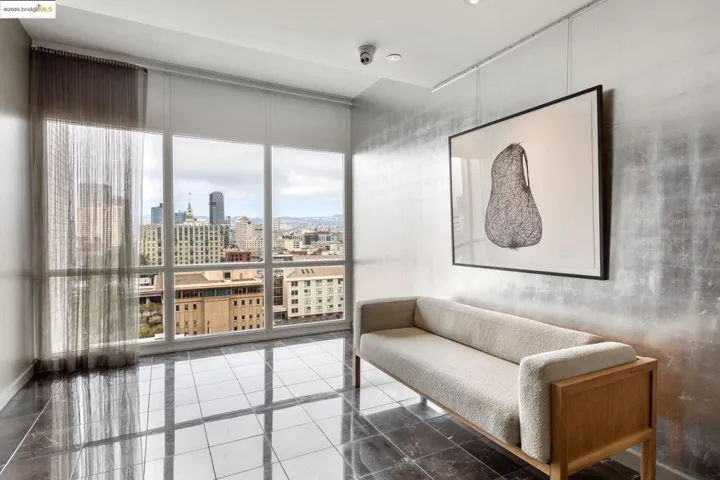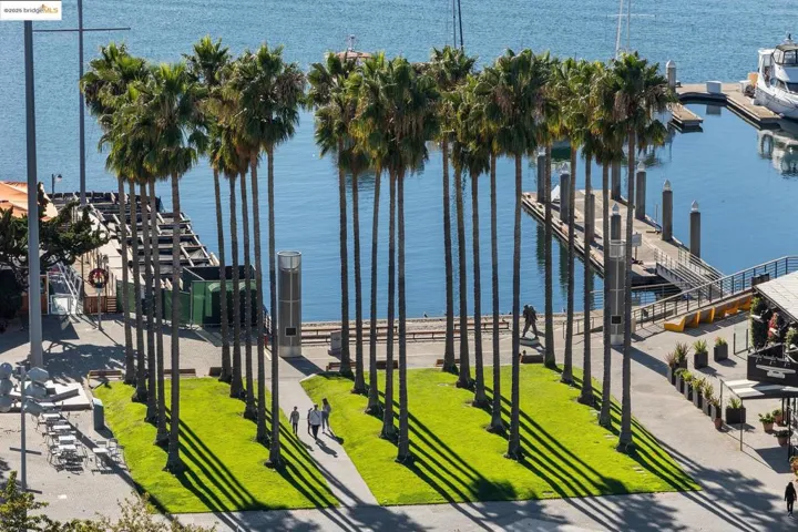 This stunning home features panoramic views of the Oakland waterfront, San Francisco’s skyline, majestic Mt.Tamalpais & 3 iconic bridges – The Bay Bridge, Golden Gate Bridge & the San Rafael Bridge. Captivating vistas are perfectly framed by dramatic floor-to-ceiling windows that flood the interior w/abundant natural light. The open floor plan allows for seamless transition between spaces while maintaining a distinct division between bedrooms for added privacy. Both bedrooms offer access to private balconies where you can soak up the southwest exposure & take-in the spectacular views. Custom built-in workstation with Mockett power outlets. Remote controlled blinds throughout. Pantry. A/C. Primary bathroom exudes luxury: Kohler tub, separate frameless glass shower, dual sinks & linen closet. 2 side-by-side parking spaces in gated garage + dedicated storage locker. The Ellington is JLS’s premier residence and offers resort-style amenities: 24-hr attended lobby, concierge services, 50-ft outdoor pool & spa, fitness center & designer clubroom. BART, the Ferry, Amtrak & the Alameda water taxi are all easily accessible for effortless weekday commuting & weekend getaways. Walk Score of 97. Enjoy gourmet restaurants & cafes, waterfront trails, and the popular Sunday Farmer’s Market.
