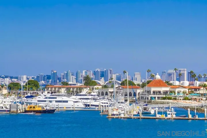 Located in the highly sought-after La Playa rental offers a prime location just one block from Kellogg Beach, affording stunning vistas of downtown San Diego Bay and the skyline. The residence boasts abundant natural light flowing through its expansive windows, illuminating the open-concept living spaces. The primary bedroom features a king-sized bed and upgraded en-suite bathroom. Second bedroom furnished with a king bed is conveniently situated across from a well-appointed hall bathroom with a standing shower. Sofa sleeper is available in the living room. High-speed internet, Smart TV, pool such Enjoy La Playa !!