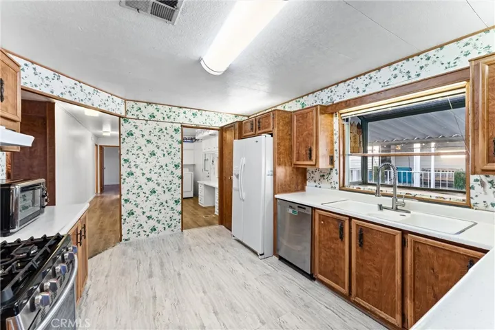 Welcome to #80 at Sunkist Gardens, a vibrant 55+ community in the heart of Anaheim! This 2-bedroom, 2-bath home has a great flowing floor plan you don’t want to miss! Seller has taken care of the major systems, including new a/c and heating system and new tankless water heater. Along with replaced roof, laminate flooring, all plumbing, stove/oven, and dishwasher too. You just need to update the inside to your liking. Huge inside laundry room, lots of storage, light and bright living room and family room. Nice size kitchen with garden window too. Spacious walk-in storage shed at the end of your extra-wide driveway. The location is unbeatable—just minutes from Disneyland, Angel Stadium, Honda Center, and the exciting new OCVibe development, putting dining, music, sports, and entertainment right at your doorstep. Life at Sunkist Gardens is all about connection and enjoyment. Join in on community activities like bingo, bunco, exercise classes, game nights, and live big band music—or simply relax by the pool and spa. The clubhouse offers a full kitchen, library, pool tables, jukebox, and plenty of space to gather with friends. With outdoor BBQs, shaded tables, and lush surroundings, there’s always something to enjoy. This home and community offer the perfect blend of comfort, convenience, and lifestyle—don’t miss this opportunity!