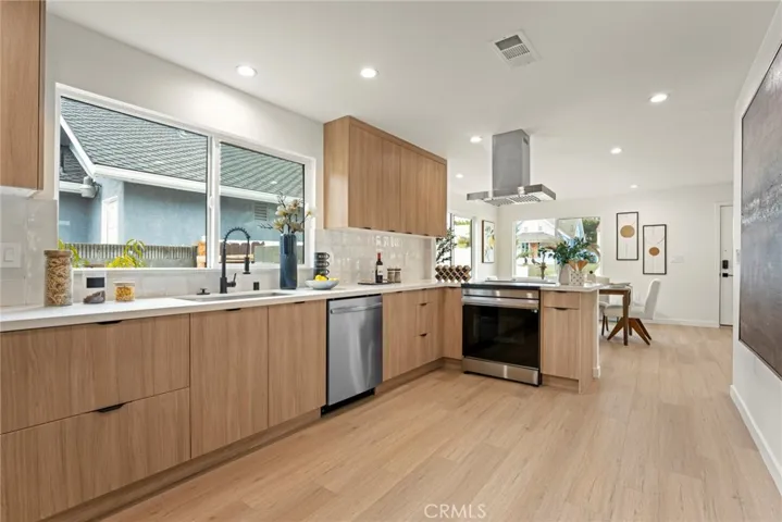The main house (1,396 SF) showcases open-concept living with a bright living room, spacious dining area, and a chef’s kitchen featuring quartz countertops, oak panel cabinetry, and stainless-steel appliances. All bedrooms are thoughtfully located toward the back of the home for added privacy, including two en-suite bedrooms that provide ultimate comfort and flexibility.The detached ADU (731 SF) mirrors the same elegant finishes, featuring 3 bedrooms, 2 baths, a full kitchen, and in-unit laundry — ideal for extended family, guests, or as a high-income rental unit. Both homes have been fully remodeled and upgraded, with new roofs, HVAC systems, tankless water heaters, and updated plumbing, sewer, and electrical systems.
