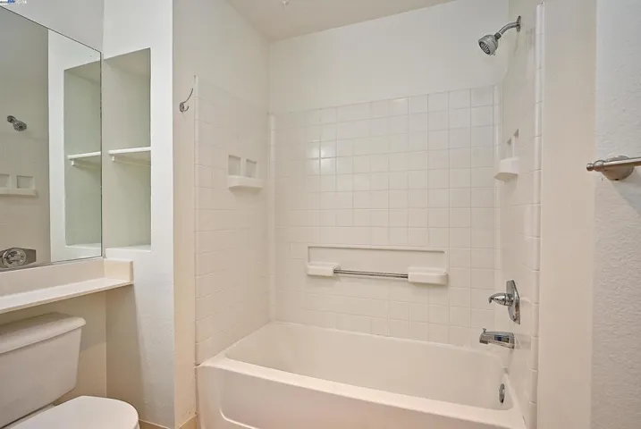 Perfectly positioned in the Parkwoods! Located on the quieter side and drenched in natural light! Main living area with southwest facing window, lighted ceiling fan, gas fireplace, display nook and glass access door to private balcony also with southwest exposure. Kitchen includes gas range, built-in microwave, dishwasher, refrigerator, ample cabinets, tile counters, breakfast bar and LVP floors. Laundry closet with full size LG washer & dryer. Bedroom with lighted ceiling fan also benefits from natural light pouring through slider leading to your balcony. Walk-in closet, full bathroom with shower over tub and linen cabinets both situated off the bedroom. Additional balcony features include storage closet and iron table chairs included! Dedicated garage parking space. Parkwoods is a gated community offering residents refreshing pool with swimming lanes, spa, sauna, clubhouse & gym. Conveniently located for easy access to all the exciting options the Bay Area has to offer! Then come home to your quiet retreat to recharge for your next adventure! Open House Saturday 11/22 from 1:00 to 3:00