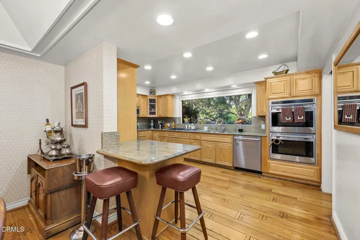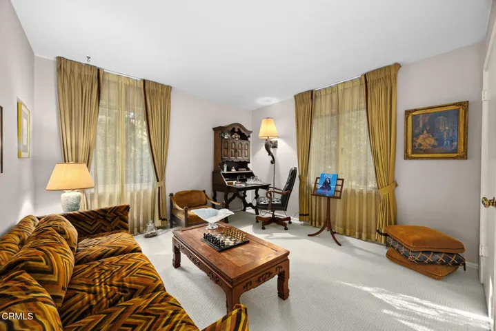 Nestled in the heart of La Canada Flintridge’s most coveted enclave, this once-in-a-lifetime estate redefines refined California living. Spanning over half an acre beneath a majestic canopy of ancient oaks, this meticulously preserved 1952 single-story masterpiece–owned by one discerning family for 65 years and once the sanctuary of Dodger legend Buzzi Buvasi–offers unparalleled privacy on a rare corner lot, with generous buffers from neighbors and an elevated perch exuding timeless curb appeal. A serpentine path through verdant, professionally landscaped gardens leads to grand double doors, opening to a luminous formal entry that unveils an expansive living room anchored by a statement fireplace and floor-to-ceiling picture windows bathing the space in natural serenity. Seamlessly transitioning to a formal dining room ideal for intimate gatherings or grand soirees, the interiors flow with effortless elegance. The chef’s kitchen is a culinary masterpiece, boasting sleek slab granite counters, bespoke custom cabinetry, a substantial breakfast bar, Wolf double ovens and six-burner cooktop, Sub-Zero refrigeration, and an oversized breakfast room crowned by a granite wet bar–perfect for al fresco mornings or pre-dinner aperitifs. Adjacent, the grand family room, clad in luxurious pecan wood paneling, serves as the home’s sophisticated heartbeat, blending heritage charm with modern allure. The primary suite is a private oasis, featuring a spa-like marble bathroom with indulgent Jacuzzi tub and rain shower. A fourth bedroom, ingeniously designed as a multi-purpose retreat with built-in desks and cabinetry, caters to family legacy or guest versatility. Throughout, discover new roofing, state-of-the-art HVAC, gleaming hardwood floors, fresh carpet in three bedrooms, and an extraordinary 200-bottle oak wine cellar for the connoisseur. Outside, a resort-worthy tropical paradise awaits, centered on an expansive 20×50 pool, accompanied by a luxurious cabana and private sports court–ideal for entertaining or unwinding in ultimate seclusion. With its rare marble accents, artisanal craftsmanship, and storied provenance, this trophy estate embodies La Canada Flintridge’s enduring legacy. Seize this singular opportunity to claim a slice of California’s most exalted lifestyle.