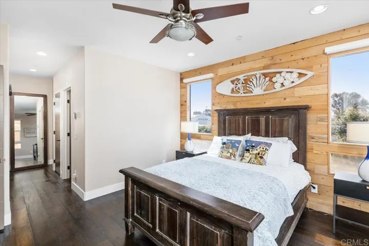 Live the Luxury Coastal Lifestyle in the Heart of Carlsbad Village! Welcome to your dream retreat on State Street, where modern sophistication meets laid-back coastal charm. With over 2,100 square feet of beautifully designed interior space and an expansive, private rooftop deck, this swanky coastal condo places you within steps of the lagoon, beach, boutique shops, and the vibrant dining scenes of both downtown Carlsbad and South Oceanside. Natural light floods every level of this three-story end unit, highlighting custom finishes, rich wood floors, high ceilings, and an effortless flow throughout. Enter through the private courtyard or your oversized two-car garage into a versatile first-floor flex space -perfect for a living area, guest suite, or home office. The second floor showcases the heart of the home with a stunning chef’s kitchen featuring a large island with leathered granite countertops, custom cabinetry, designer fixtures, and top-of-the-line stainless steel appliances. The open-concept dining and living areas are ideal for entertaining or relaxing, complemented by two balconies- one for morning coffee or evening BBQs and another charming French balcony right off the dining room. Upstairs, the third-floor hosts both bedrooms and laundry. The guest suite includes an ensuite bath, a walk-in closet, and its own French balcony. The primary suite is a serene sanctuary with west-facing windows framed by eucalyptus trees, a spacious walk-in closet plus two additional closets, and a spa-inspired bath with dual vanities and a spacious shower. Saving the best for the last…the final and fourth floor takes you to your private rooftop deck – the ultimate outdoor escape- offering panoramic ocean and city views, refreshing sea breezes, and unforgettable sunsets over the Village. Whether enjoying morning coffee, sunset dinners, or starlit gatherings, this is the space that will make you fall in love with coastal living for the first time or all over again. Additional features include dual A/C units, a whole-house water filtration system, EV charger, ample storage, custom window blinds, and ceiling fans throughout. Seagrove is just steps from the best that Carlsbad Village and South O have to offer -world-class dining, local boutiques, beaches, train station and coastal trails -this home blends luxury, convenience, and the irresistible energy of seaside living. Your coastal dream home awaits.