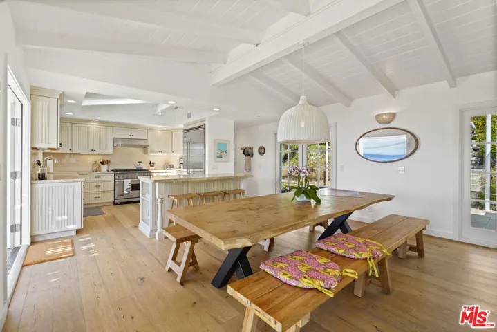 This stunning Malibu Park updated single-story ranch-style home embodies the epitome of beachside living, offering breathtaking ocean views from almost every room. The great room boasts high beamed ceilings, oak wood floors, and multiple French doors that lead to a spacious ocean view covered patio, along with a lush grassy front yard and a charming patio back yard. Relax in the living room by the rough-hewn stone fireplace, adding to the cozy coastal ambiance.The gourmet kitchen is a culinary haven, featuring large skylights, high-end appliances, polished Taj Mahal countertops, custom cabinets, and a convenient breakfast bar. The bright and open floor plan creates a seamless flow, perfect for hosting parties and indoor/outdoor entertaining. This home includes two-bedroom suites, one with an office, as well as two ocean-view bedrooms with bay windows and two bathrooms. The ocean view owner’s suite offers a serene retreat, with a raised entry, high ceilings, a spa-style bath, a custom closet, and French doors opening onto the front patio and the backyard. End the day playing ping pong, sitting in one of many outdoor seating areas, roll in the large grassy yard or sit in the cedar wood dry sauna. It’s the Ultimate beach Vibe. For added peace of mind, the property is gated and fenced for security. Fully furnished and available for monthly rentals, this home is ready to provide a luxurious coastal lifestyle. Don’t miss the opportunity to call this beachside oasis your own. Current Tenants in property until mid- December but can show with notice. (INCLUDES ALL UTILITIES, WEEKLY CLEANING, GARDENER)