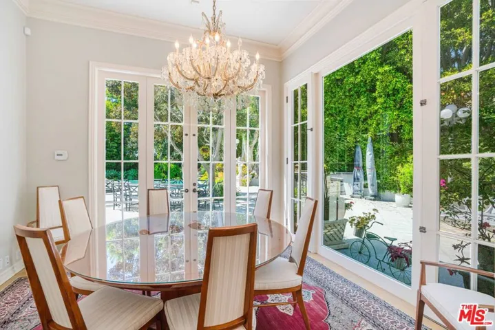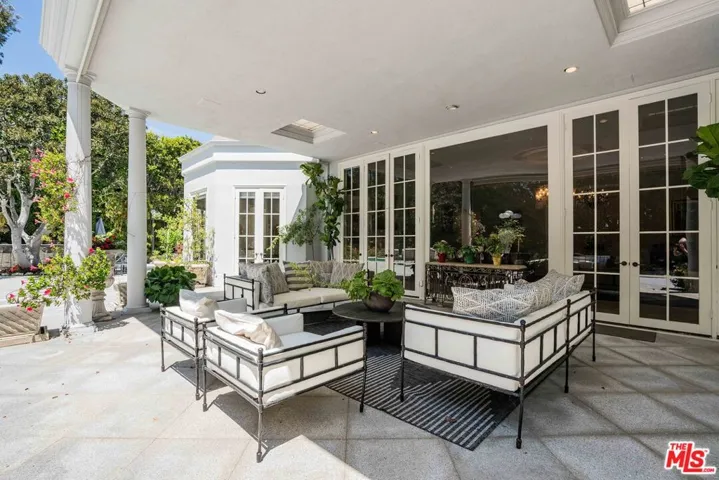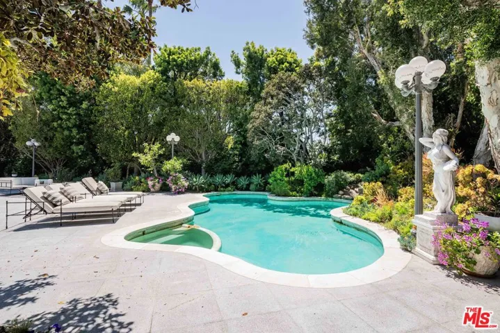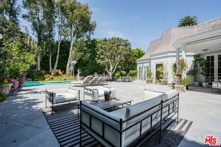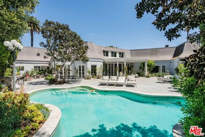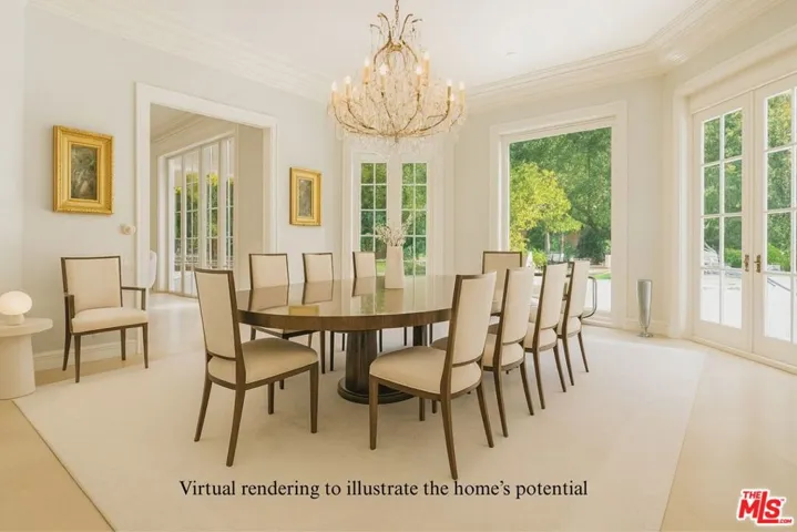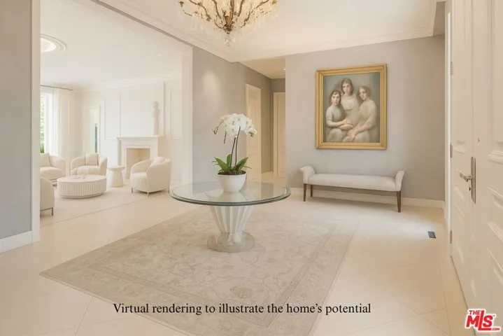 Introducing 915 Hartford Way, a timeless French Regency estate nestled behind private gates in prime Beverly Hills, just moments from the iconic Beverly Hills Hotel. This architectural gem blends elegance, sophistication, and serenity across beautifully landscaped grounds. Step through grand double doors into a dramatic two-story foyer. The formal living room showcases a stately fireplace and walls of glass framing lush surroundings. An open floor plan connects refined living spaces, including a formal dining room with soaring ceilings and tranquil views, and a charming breakfast room with direct outdoor access. The gourmet kitchen is a chef’s dream, featuring a central island, top-tier appliances, and seamless design. A cozy family room/den boasts rich wood floors, custom built-ins, a fireplace, and an adjoining office. The luxurious primary suite offers a peaceful retreat with fireplace, dual walk-in closets, and a spa-like bath with soaking tub and walk-in shower. Two additional guest suites on the main level feature custom finishes and garden views. Upstairs, find a spacious guest room with its own bath and an expansive bonus room ideal for entertainment or play. Outdoors, enjoy a resort-style oasis with lush gardens, a covered terrace, pool, fire pit, bar, and multiple dining areas and lounge spaces. Additional amenities include maid’s quarters, a wine cellar, and a 3-car garage. A rare offering of privacy, luxury, and proximity to world-class shopping, dining, and entertainment. Shown to prequalified buyers only. (Virtual renderings to illustrate the home’s potential.)