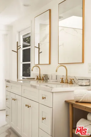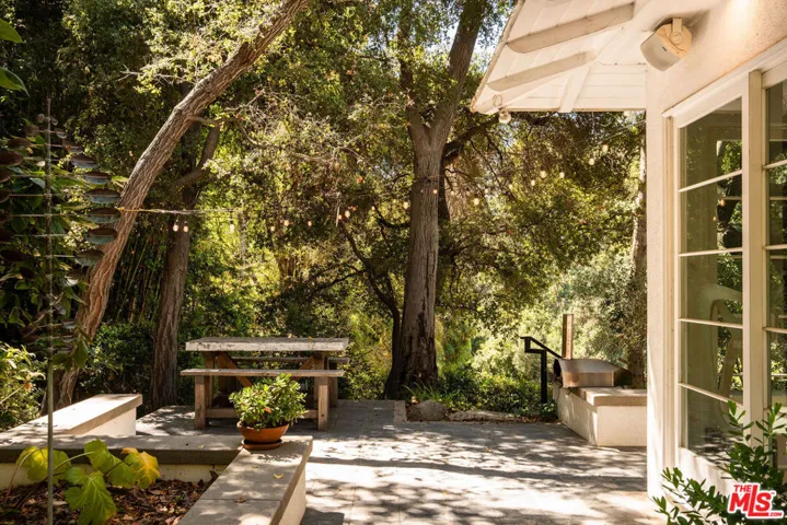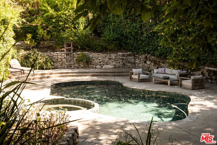 Tucked away among the trees on coveted lower Nichols Canyon Road in the Hollywood Hills, this unassuming traditional residence opens up to over 4,000 square feet of refined living space on an expansive 18,000 square-foot lot. With 4 bedrooms, 4 bathrooms, and a dedicated office, the home balances gracious scale with intimate warmth. A pool and spa are perfectly framed by lush greenery, while fencing ensures the utmost privacy. This magical setting is designed to inspire both serenity and joy. From the moment you enter, walls of glass draw the eye outward to captivating views of nature, where sunlight filters through a canopy of mature trees. The spacious living room features newly installed wide-plank hardwood floors, a fireplace, and a built-in bar. An inviting backdrop for gatherings. Flowing seamlessly into the dining room and a spectacular chef’s kitchen, the open-concept design creates an effortless atmosphere for entertaining. Completed in 2022, the kitchen is a dream, with a dramatic waterfall quartz island, professional-grade stainless steel appliances, abundant custom cabinetry, and a cooktop thoughtfully positioned to allow the host to engage with guests.The main-level primary suite offers a private deck with verdant vistas and a luxuriously renovated bath with spa tub, separate shower, and dual sinks. On the lower level, two generously sized bedrooms with private patios are connected by a cozy library nook, while a discreetly concealed 800-bottle wine cellar adds a touch of indulgence. For the ultimate in flexibility, a private upstairs wing includes a guest suite with bath and a gym or office space. Outdoors, the property transforms into a secluded wonderland. Towering oaks, fruit trees, and climbing vines surround the pool and spa, creating an enchanting natural sanctuary where the sounds of wildlife become part of the charm.Peace of mind comes with thoughtful upgrades, including a whole-house generator, roof sprinklers, alarm system, new pool plaster and systems, central HVAC, and a recently replaced sewer line. Just minutes from hiking trails yet nestled in an idyllic setting, this Nichols Canyon retreat is a rare opportunity to enjoy both immersion in nature and proximity to the city. A timeless estate that feels worlds away.