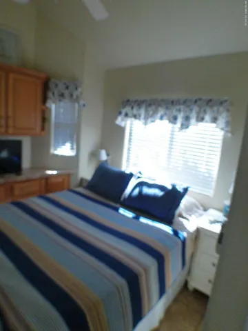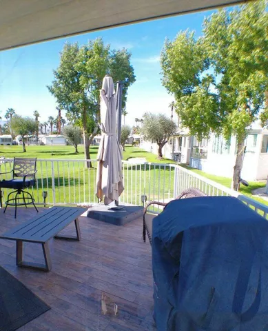 Awesome Park Model by the 13th Green and path. Loft Model. Enclosed deck area with sliding glass doors and awesome view of 3 golf holes, pond and mountains in background. Fully furnished. Upstairs center Loft with Bed.