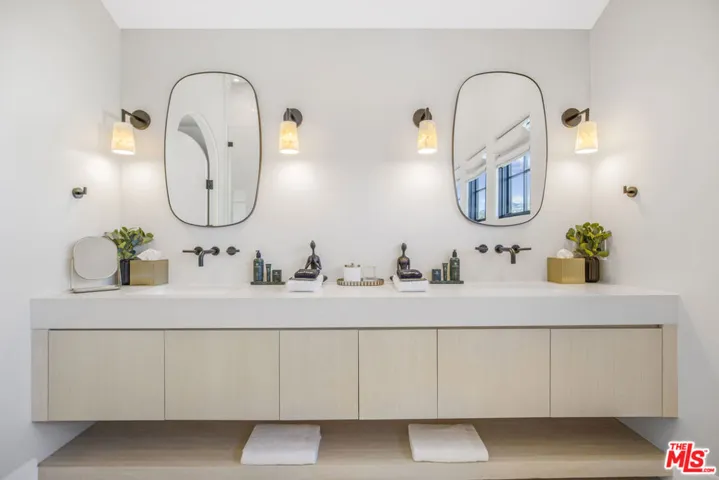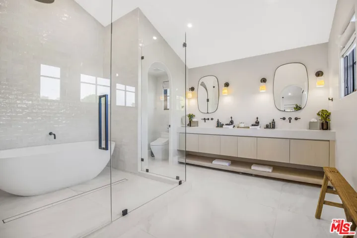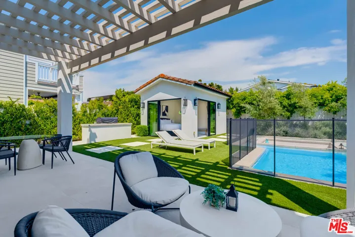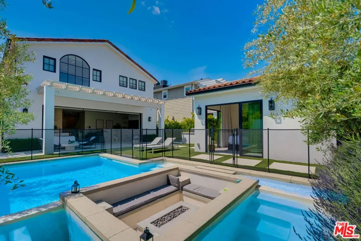 This property is available for short-term and long-term rentals, each with its respective pricing options. It is fully furnished, decorated, and equipped with hotel-like essentials and amenities. With our concierge team available to assist 24/7, this home rental offers a five-star hospitality experience, whether you are staying for a few days, a month, or a year. This residence is a serene retreat in one of LA’s most sought-after areas, blending comfort, elegance, and opportunity. Featuring five spacious bedrooms and five and a half luxurious bathrooms, the Mediterranean-style villa showcases timeless design with white stucco walls, terracotta roof tiles, and modern black-framed windows. Hardwood floors flow throughout, with natural light pouring into the inviting living spaces. Large sliding doors connect the indoors with the beautifully landscaped outdoor area, which includes a serene pool, fire pit lounge, and manicured lawn. Located near top schools, trendy shops, and gourmet dining, this home offers both tranquility and vibrant city living.