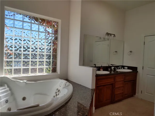 The open-concept kitchen is perfect for entertaining with granite countertops, Viking appliance, and solid wood cabinetry. The primary suite offers tranquility and space. Nearby is an indoor spa for relaxation.