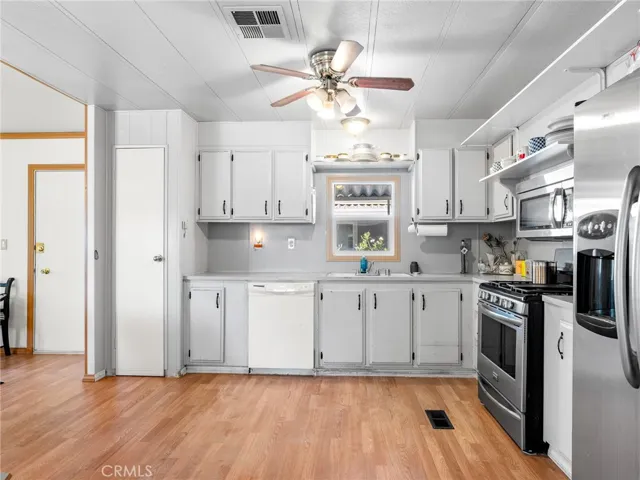 Beautiful Double-Wide in a Desirable Park! This spacious mobile home features an inviting open floor plan with abundant natural light throughout. The kitchen offers plenty of counter space and storage. Enjoy newer floors, fresh paint, and updated windows. 2 big storage units for lots of storage.
