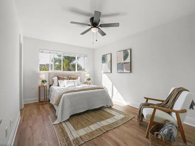 Just blocks from the sand and steps from the best of Pacific Beach, this top-floor, corner-unit condo offers bright, coastal living with no downstairs neighbor. The open layout features fresh paint, updated LVP flooring, and dual-pane windows that welcome natural light and ocean breezes. The kitchen shines with stainless steel appliances, granite countertops, and custom cabinetry. Both bedrooms offer walk-in closets, and the home includes in-unit laundry, a private one-car garage with storage, an additional parking space, and access to a shared storage room. The secure, pet-friendly building features gated entry, a BBQ courtyard, and attractively low HOA fees. Perfectly situated near popular cafés, restaurants, local shops, and entertainment, this well-maintained home is ideal as a full-time residence or turnkey coastal escape. Some additional recent upgrades in the complex include: New roof (2020), New windows on west facing wall (2020), New stucco, west-facing wall (2021) Water heater replacement (2022), Termite treatment (Feb 2023), Fence repairs/replacements (May 2022 & Oct 2024), New water meter (2022)