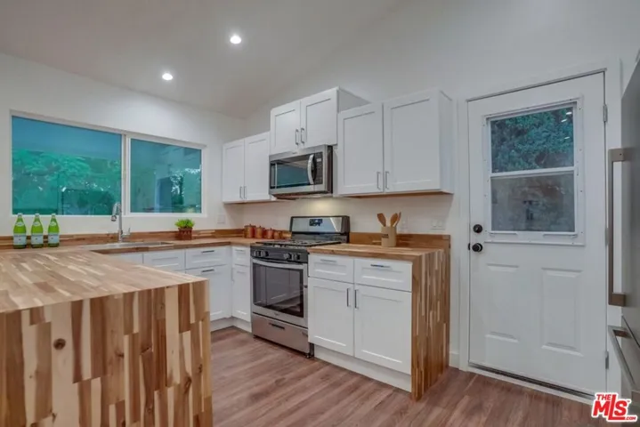 Offering classic curb appeal with its Craftsman-style exterior and inviting front porch, this beautifully remodeled bungalow is the epitome of modern elegance. Inside, the light-filled living area features vaulted ceilings and skylights, creating an airy, open feel. A cozy alcove off the living room makes the perfect home office or creative nook. The kitchen, meanwhile, comes fully equipped with stainless steel appliances, including a gas range, dishwasher, microwave, and counter-depth fridge. Bedrooms on either side of the home open to a private, fully fenced 650 SF patio and garden. Additional highlights include ample closet space, an in-unit LG washer/dryer, central heat/AC via a Nest thermostat, and stylish finishes. Situated at the front of a peaceful three-home compound just north of Colorado Blvd, this home offers easy access to all of Eagle Rock’s hotspots, including Vidiots, Walt’s, and Capri Club and is less than five minutes from Occidental College and the 2 and 134 freeways. Includes 1 parking space at the front of the house. Pets Ok! Owner pays for landscaping plus water & sewer.