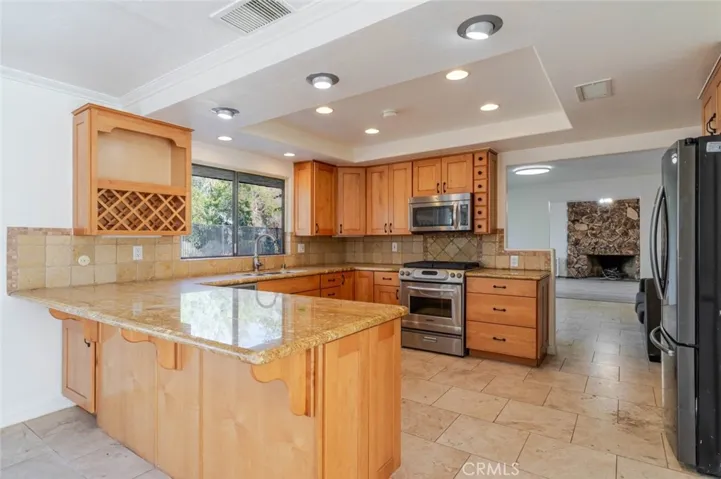 The thoughtfully designed layout includes a formal living room, family room, and dining area, ideal for both daily living and entertaining. The kitchen area is conveniently complemented by a wet bar, making it easy to host gatherings.