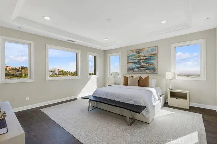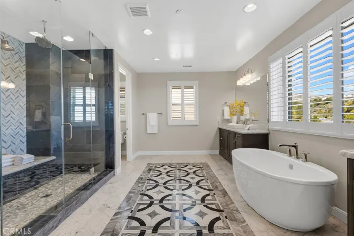Stunning luxury estate with panoramic views, ideally positioned at the end of a peaceful cul-de-sac in the exclusive, 24-hour guard-gated Westcliffe at Porter Ranch community. One of the larger properties in the neighborhood, this impressive Spanish Colonial Palisades model by Toll Brothers offers 5,710 square feet of refined living space, featuring 5 bedrooms, 5.5 baths, and an additional flexible room located just behind the kitchen.