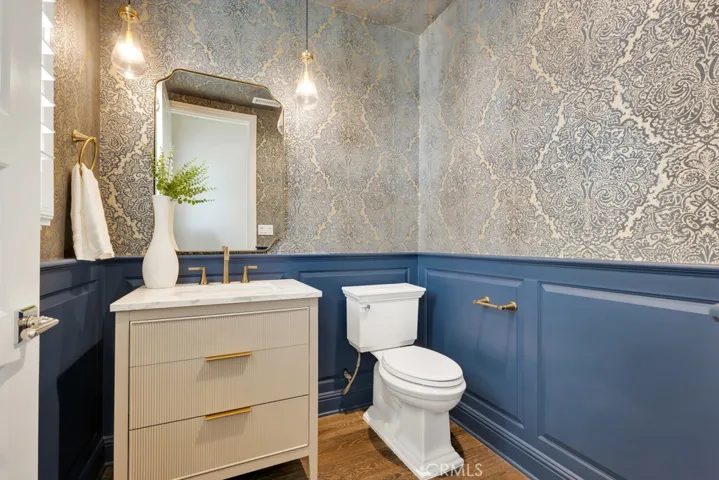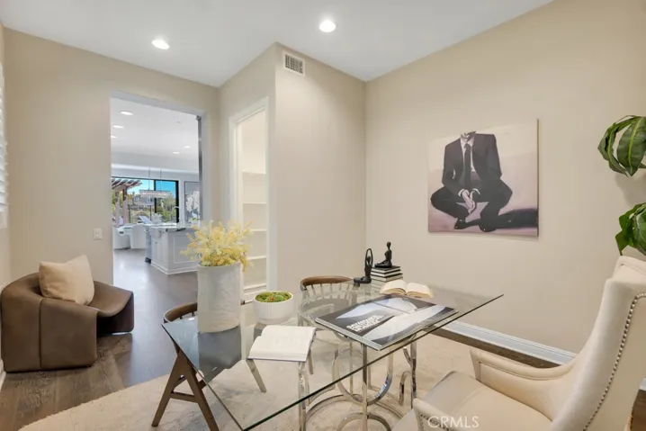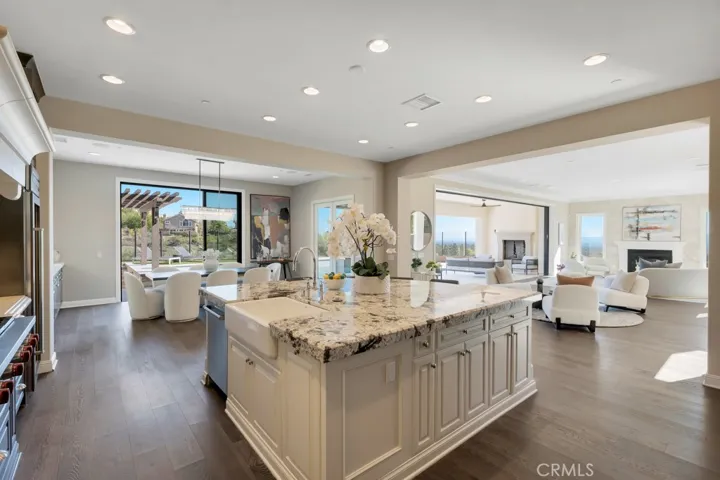 Fully reimagined in 2025 with a complete interior renovation and landscape redesign, the home showcases dark-stained white oak hardwood floors throughout, natural stone countertops, and luxury appliances from Sub-Zero and Wolf. Expansive multi-panel glass doors open to the patio and courtyard, creating a seamless indoor/outdoor flow ideal for entertaining.