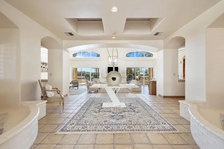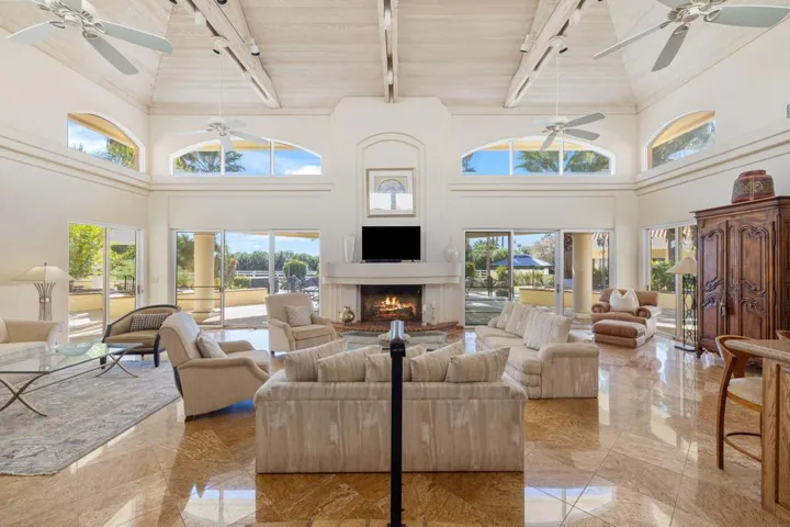 Welcome to Vista Montana Acres, a 2.5 acre equestrian estate comprised of 2 properties. The first is a spacious 5 bedroom, 4.5 bath home with stunning vaulted ceilings, an open concept kitchen with upgraded Viking appliances, separate formal dining and living rooms, wet bar, 3 fireplaces and a two room master retreat with spacious en suite containing a spacious walk in closet, large glass enclosed shower, separate soaking bathtub and gorgeous exterior views including the panoramic southwest mountain scenery that surrounds. The second house is comprised of a 2 bed, 2 bath guest house containing a kitchenette and private laundry for added convenience! Both are tastefully furnished with western stylings and separated by a beautiful pool complete with descending rock waterfall, secondary lap pool, above ground spa and built in barbecue area, large covered patio with misters as well as a large fully enclosed grass pasture and covered stable for your equestrian needs. Located on a secluded street surrounded by lush landscaping for ultimate privacy within the exclusive gated community of La Quinta Polo Estates, directly across from Eldorado and the Empire Polo Fields, Coachella Valley’s premier destination for world-class polo competitions. Available now for short or long term stays in excess of 30 days .
