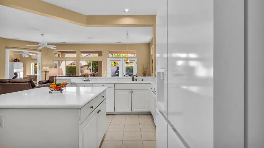 You’ll fall in love with this beautifully maintained 2-bedroom, 2-bath Fostoria model home! From the moment you arrive, the stamped concrete entry and lush gated courtyard set a welcoming tone. Step inside to an open floor plan featuring 10-foot ceilings, transom windows, and designer paint that create a bright, spacious feel. Tile flooring flows throughout the main living areas, with cozy carpet in the bedrooms.The inviting great room offers plenty of windows that bring the outdoors in, while the kitchen is a cook’s delight–complete with a skylight, pantry, oversized prep island, and abundant cabinet space. French doors from both the great room and den open to an entertainer’s backyard, featuring a relaxing leisure area, raised planter, and a fire pit–ideal for gatherings or quiet evenings under the stars.The primary suite features double French door entry, a bath with dual vanities, soaking tub, and separate shower highlighted by a decorative glass block window that fills the space with natural light. A spacious walk-in closet includes built-in organizers for convenience. The guest bedroom and bath are thoughtfully located on the opposite side of the home for added privacy. It is offered furnished at no additional value (some exclusions apply). Additional highlights include ceiling fans, an indoor laundry area, and a two-car garage with storage cabinets and a utility sink. This home truly offers comfort & style–ready for you to move in and enjoy!