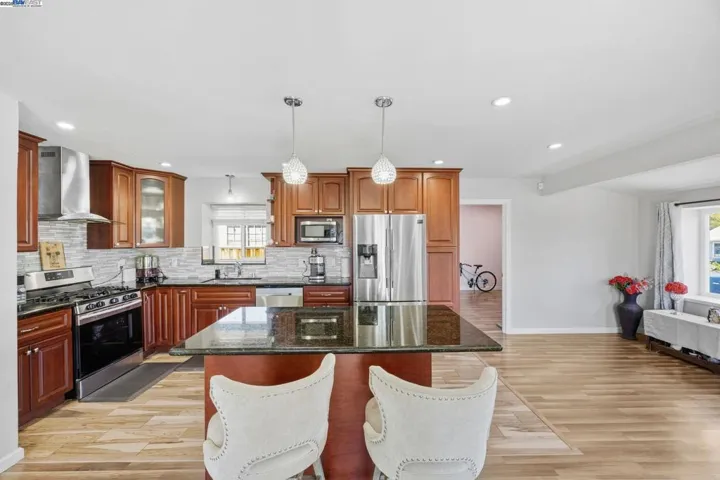 Lovely remodeled NE facing single-story home of your dreams is awaiting new owners in the highly desirable cul-de-sac Castro Valley School District. Upgraded kitchen has granite countertops, Glass tile backsplash, Cherry wood cabinets w/self-closure drawers, Breakfast bar and SS appliances. Newer AC w/Nest, Ceiling Fans, New Front door with Keyless entry, Ring and much more! Updated bathrooms, Laminate flooring, Baseboards, Dual pane windows, Copper plumbing and Sprinklers. Home has a bright interior with lots of natural and recessed lights. Large fenced landscaped yard with front deck overseeing hills perfect for relaxing! Generous Flat backyard with plenty of room for entertainment, Shed great for tools or Storage, Separate entry for boat, RV or additional parking with mature lemon and orange trees. Sewer Lateral Compliant. Moments to historic CV downtown known for its local eateries, Shopping & Entertainment! Convenient commuter location – Close to 580/880 & Bart. No HOA. Make it yours! OH 12/13 1:00 to 4:00