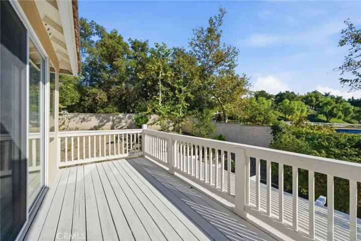 Located on a quiet cul-de-sac within the guard-gated community of Coto de Caza, this turnkey home offers privacy, resort-style outdoor living, and close access to trails, golf, and equestrian amenities. Ideal for buyers seeking a peaceful street in one of Orange County’s premier master-planned communities. The home features 5 bedrooms with an option for a sixth, 3 full bathrooms, and a functional layout with two bedrooms and a full bath downstairs. Two living rooms provide versatile spaces — one beneath the spiral staircase and another open to the kitchen with a fireplace, perfect for gatherings. The open-concept kitchen includes a center island, newer GE stainless steel appliances (refrigerator, double oven, and four-burner cooktop), totaling three ovens—ideal for hosting and holidays. Upstairs are four additional bedrooms and a laundry room with gas and electric hookups, a utility sink, and a large linen closet. The primary suite offers a private deck, soaking tub, separate shower, dual sinks, and a walk-in closet. The backyard is designed for entertaining with a pool, spa, firepit, BBQ island, and outdoor dining area. Additional highlights include built-ins, newer luxury vinyl flooring, recessed lighting, and custom crown molding and baseboards. Residents enjoy proximity to the Coto de Caza Golf & Racquet Club, offering two 18-hole championship courses, tennis courts, fitness facilities, and fine dining. Conveniently located near top-rated schools, shopping, and dining, the property backs to a private lot.