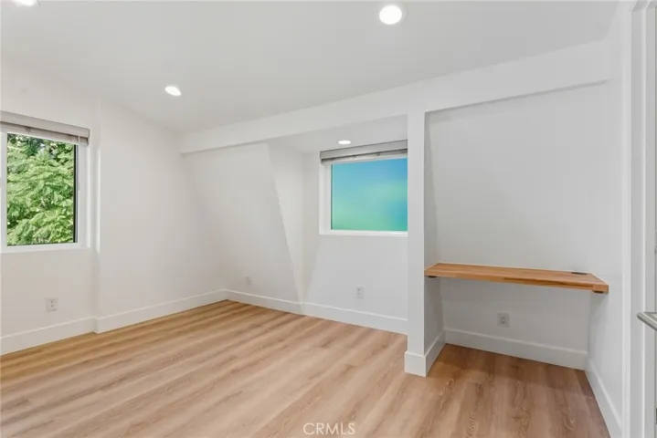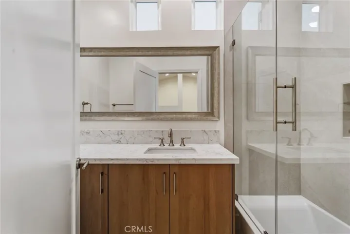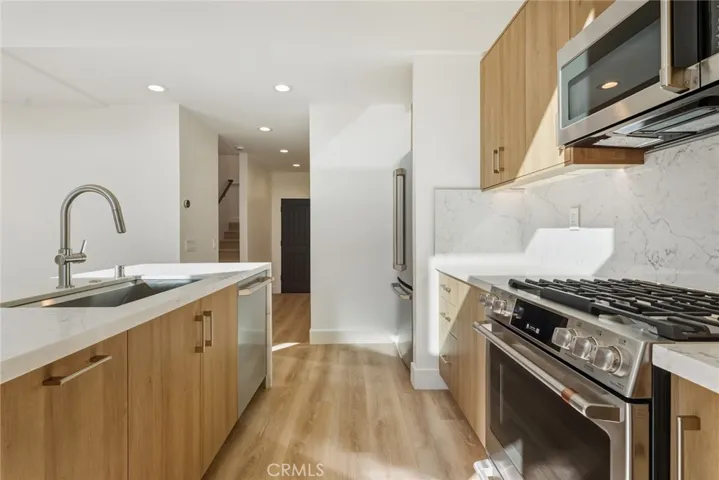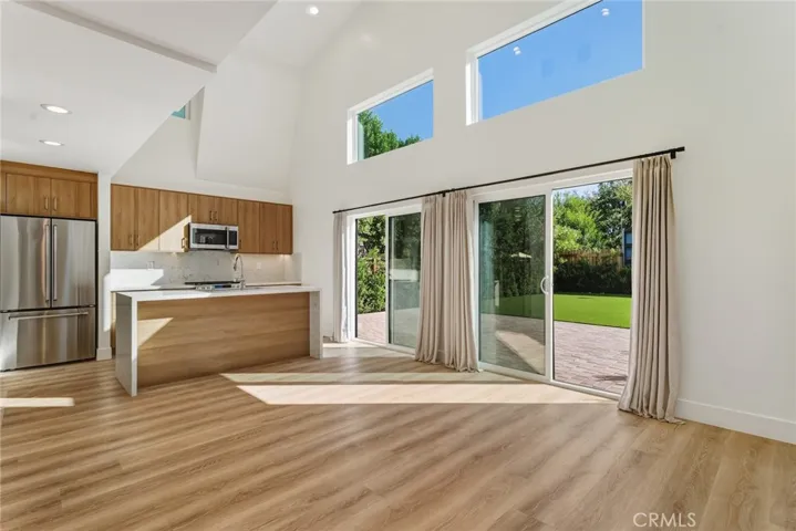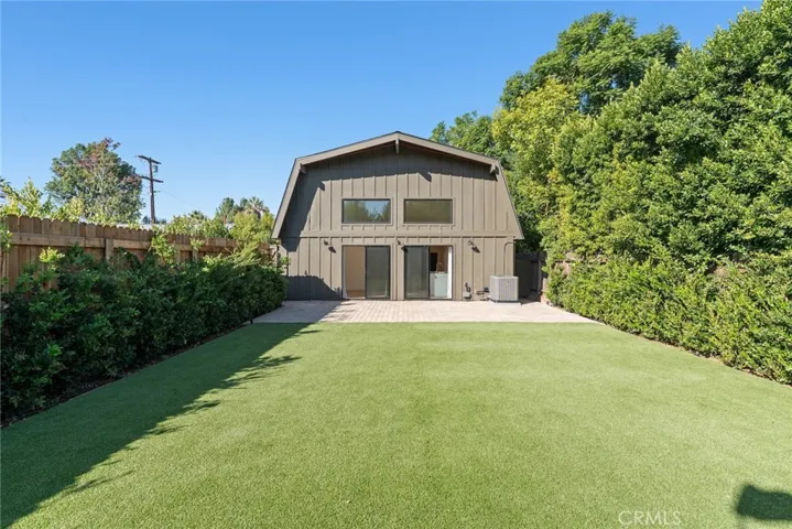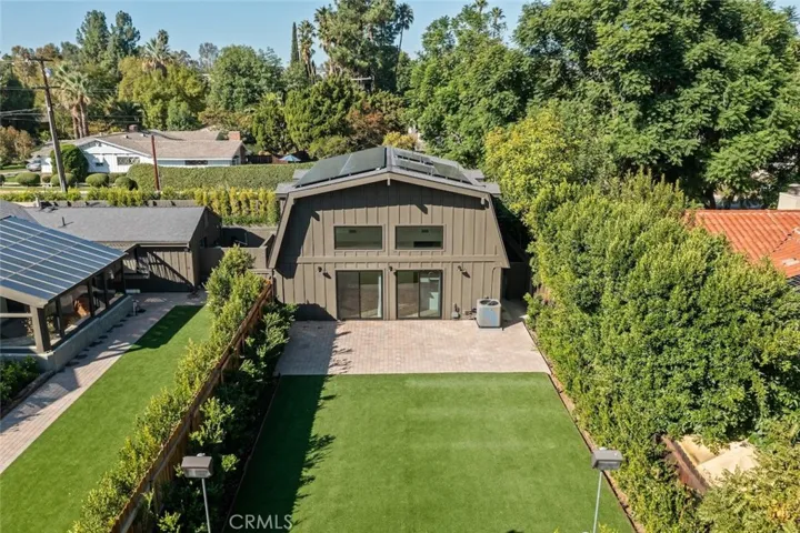 Be the very first to live in this stunning 2025 newly constructed modern farmhouse with incredible sprawling backyard located in the highly desirable Walnut Acres neighborhood of Woodland Hills. The super private property has incredible curb appeal, featuring wood siding, automatic exterior sconce lighting, new landscaping, and an oversized driveway that can accommodate parking for several cars with Tesla EV charger. Step inside to find a bright and open floor plan with designer touches and thoughtful functionality. The entry foyer leads to the showstopper of a living room featuring two-story ceilings with expansive picture windows that flood the space with natural light and two sets of glass sliders that open to the backyard for the perfect indoor/outdoor flow. The chef’s gourmet kitchen opens directly to the living room and boasts center island with waterfall quartz counters, custom soft close cabinetry with quartz backsplash, and stainless Cafe appliances including built-in range with 6-burner gas stovetop, fridge/freezer, microwave, and dishwasher. There is a first floor large bedroom featuring built-in workspace, closet with custom built-ins, and access to a full bathroom with walk-in shower and designer tiling. The first level also features a laundry room with washer, dryer, & countertop with built-in storage cabinetry; impressive wall-to-wall built-in hallway storage; plus a separate wraparound storage room. Upstairs you will find two additional bedrooms, each featuring built-in workspaces and walk-in closets with custom built-ins. The upstairs bedrooms share a spacious hallway bathroom with large vanity and bath tub with shower. The entertainer’s backyard features paver stone patio perfect for outdoor dining, large synthetic lawn for play, lush landscaping and perimeter privacy hedging with landscape lighting, and gated side yard for additional storage. Adjacent to dining/shopping at the Westfield Mall/Village, Calabasas Commons, local parks/hiking, & zoned for award-winning El Camino & Hale charter schools.