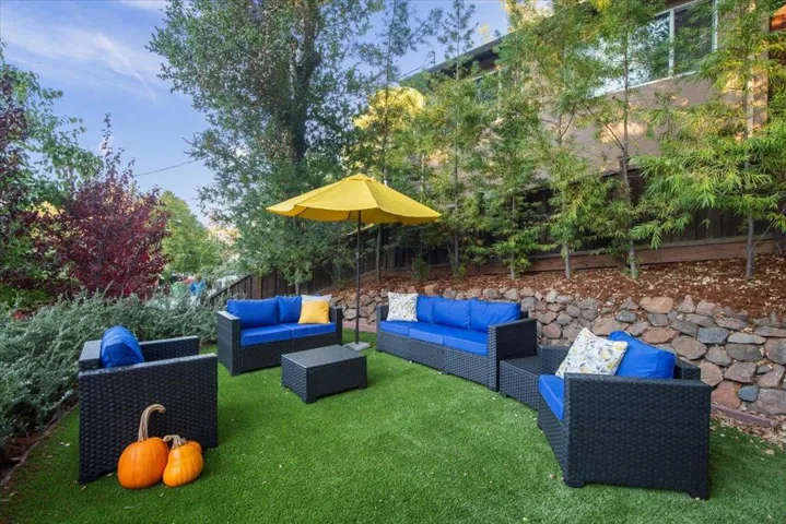 Mid-Century Modern 1 level home in prime downtown Saratoga w/Saratoga Schools + a cottage. Best of CA Living nestled in a quiet Cul-De-Sac yet steps to wonderful restaurants, coffee shops & more. Remodeled & impeccably maintained, this Wonderful Home offers open concept living & seamless indoor-outdoor entertaining. Multiple areas for entertaining: the Chef’s gourmet kitchen, formal dining room, warm & inviting living room, separate family room & stunning scenic outdoors. The Gourmet Chef’s kitchen features a new high-end Wolfe range & oven, Fisher & Paykel refrigerator, Bosch dishwasher, & sleek granite slab counters. The primary features a large walk-in closet & remodeled bathroom w/granite slab counter & designer tile shower w/edgeless glass. The remodeled hall bath features tile flooring, granite counter & a shower/tub combo. Cottage is perfect for guests, an office & includes a full bath. Other outstanding features: Private location w/ no rear neighbor in view; gleaming wood floors, smooth coat drywall texturing, abundant dual pane windows w/soaring sunshine & scenic views, interior laundry w/extra storage, tankless water heater, upscale hardscape w/pavers & stunning stonework, lush landscaping w/room to play, & 2 car garage. The ideal oasis yet close to major employers.