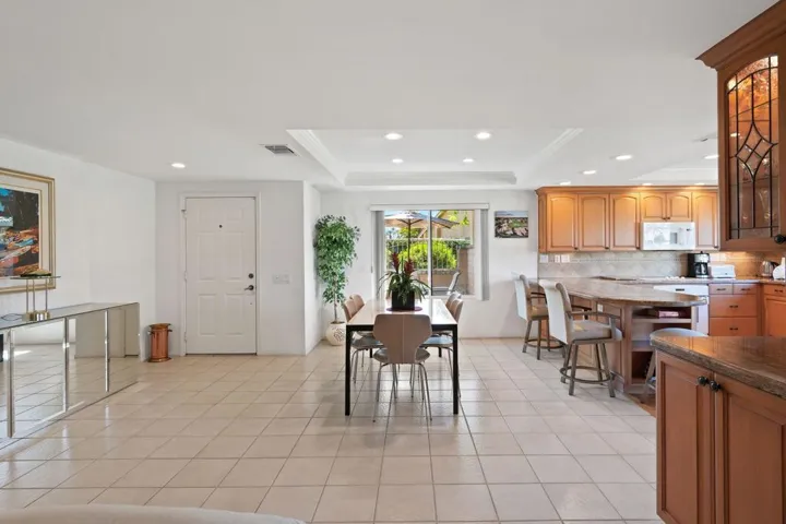 Panoramic views of the Golf Course, Lake, and Mountains are just spectacular from this 3BD / 3BA end unit that features a private front side yard and an extended rear patio with a retractable awning. Prime location within the Country Club and situated just steps from the gated pool / spa. Updated kitchen with Granite Counters and newer appliances. Plenty of space and ready to lease for the upcoming season.Chaparral CC features a challenging 18 hole Golf Course, Tennis, Pickle Ball, Fitness Center and remodeled clubhouse with Restaurant / Bar.Property is leased January – April 2026