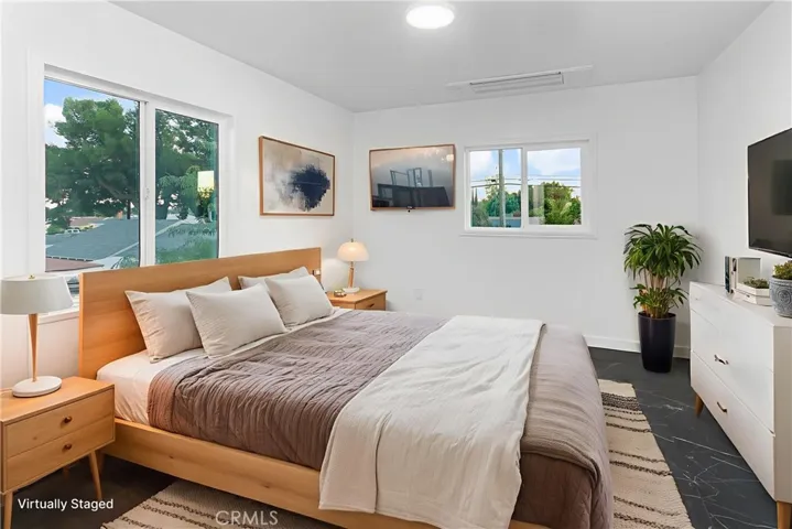 A rare opportunity with a BRAND-NEW, FULLY PERMITTED ADU built in 2025 and SOLAR PANELS on both the main home and the ADU. A TOTAL 5 BEDROOMS AND 4.5 BATHROOMS! Perfect for rental income, multigenerational living, or guest housing, this property combines functionality, efficiency and privacy in one turnkey package. The updated main house offers 3 bedrooms and 2 bathrooms with modern curb appeal that includes contemporary fencing, a gated driveway, artificial lawn, paver walkway and driveway, colorful landscaping, a covered porch, mature shade tree and rain gutters. Inside, you’ll find fresh paint, newer dual pane windows, 6-panel doors, a high-efficiency HVAC system with mini split A/C and a tankless water heater. The family room features a pitched ceiling, tile floors and modern lighting. The kitchen includes quartz countertops, ceiling-height cabinetry, mosaic tile backsplash, soft-close drawers and doors, a stainless 5-burner gas range with hood, stainless undermount sink and a French door that opens to the backyard. The dining area flows easily from the kitchen. The primary suite features luxury vinyl flooring, and an en suite bathroom with a custom glass-enclosed tiled shower. Two guest bedrooms and a remodeled guest bathroom with a frameless glass shower complete the layout. The backyard offers a covered patio with ceiling fan, fruit and shade trees and vinyl fencing. The NEW ADU features 2 bedrooms and 2.5 bathrooms with its own private front and back yards and separate entry. The open floor plan includes recessed lighting, natural light, tile floors and a stylish kitchen with quartz counters, ceiling-height cabinetry, full custom tile backsplash, Samsung® induction range, dishwasher, stainless undermount sink, pull-down faucet and island with breakfast bar. There are TWO PRIVATE PRIMARY SUITES, each with its own bathroom—one with a tub/shower combo and the other with a glass step-in shower. A powder room, laundry area, frameless glass stair panels, dual pane windows, 6-panel doors, separate water meter and a multizone high-efficiency heat pump add convenience and value. Located minutes from shopping, dining and freeway access, this property checks boxes for flexibility, efficiency and long-term appeal.