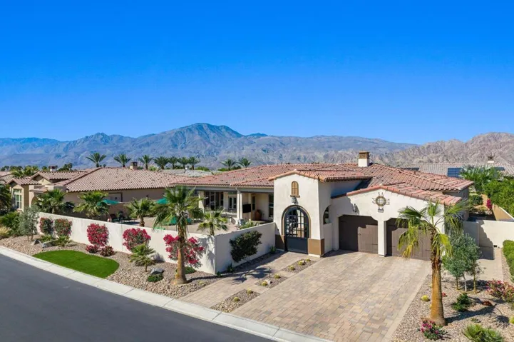 Welcome to Griffin Ranch–an exclusive, guard-gated enclave in La Quinta where luxury, privacy, and breathtaking desert views converge in perfect harmony. This exquisitely upgraded estate sits on a premium lot and is designed for seamless indoor-outdoor living and effortless entertaining.From the moment you arrive, you’ll be captivated by the custom hardscaping, paver-finished decking, and lush, maintenance-free landscaping that surrounds this desert sanctuary. The expansive outdoor area is your own private resort, featuring a sparkling saltwater pool with a Baja shelf, a rejuvenating spa, and a built-in open-air firepit. Entertain with ease at the outdoor kitchen with a built-in BBQ, dine al fresco under the covered patio, enjoy cocktails at the custom outdoor bar, or simply relax in one of several beautifully designed lounge areas.Inside, slide-away glass doors connect the great room and chef’s kitchen to the outdoor entertaining space, creating an effortless flow. The open-concept interior is light and bright, with a dining area that frames views of the backyard and fireplace, and a sophisticated lounge complete with a custom wet bar and wine cooler–perfect for hosting guests. A state-of-the-art Control4 smart system with surround sound enhances the experience throughout.The chef’s kitchen is a showstopper, boasting a large center island with bar seating, granite countertops with full backsplash, a walk-in pantry, and premium stainless steel appliances, including a double oven and built-in refrigerator.The luxurious primary suite is a peaceful retreat, while three spacious guest bedrooms offer comfort and privacy for visitors. A versatile bonus room can serve as a media room, home office, or even a fifth bedroom. Every detail has been thoughtfully curated, including contemporary lighting, smart home technology, and designer window treatments.As a resident of Griffin Ranch, you’ll enjoy access to a world-class clubhouse with top-tier amenities: tennis and pickleball courts, bocce ball, a Jr. Olympic-sized pool, putting green, dog park, BBQ area, billiards, ping pong, a cutting-edge fitness center, and Pilates studio–all included.Experience elevated desert living at its finest–Griffin Ranch offers resort-style luxury, minutes from golf, dining, shopping, hiking, and the acclaimed Acrisure Arena. This is more than a home–it’s a lifestyle.