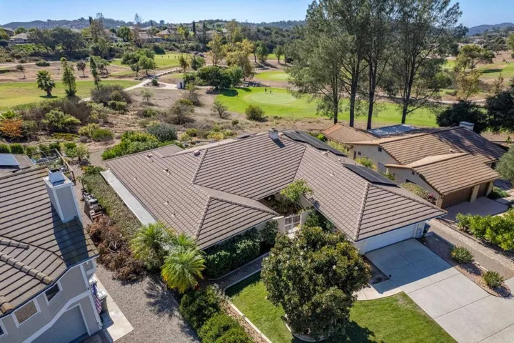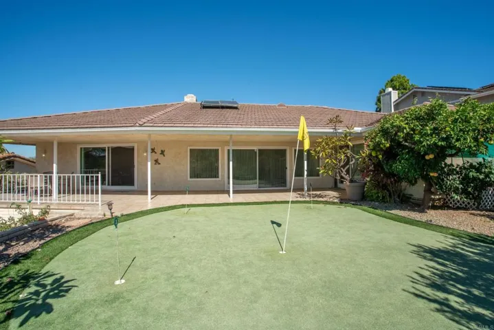 Single Level with Golf Course Views and Paid Solar! Spacious Living Room and Family Room Overlooking a Patio, Putting Green, Golf Course and Sunset views from the West. Tile flooring throughout living area with plush carpet in the bedrooms. Dual pane sliding glass doors provide easy acess to back patio. Separate Laundry room with half bath and direct access to the attached 2-car garage. Flat driveway with plenty of parking spots. Low HOA dues are only $396/YEAR and includes a Seasonal Community Pool and 2 Tennis Courts. Hidden Meadows Community has their own Fire Station, Two Markets/Deli’s, the Sideyard Pub, a Public Golf Course with a restaurant/bar and is close to Shopping, Schools and 15 Fwy.