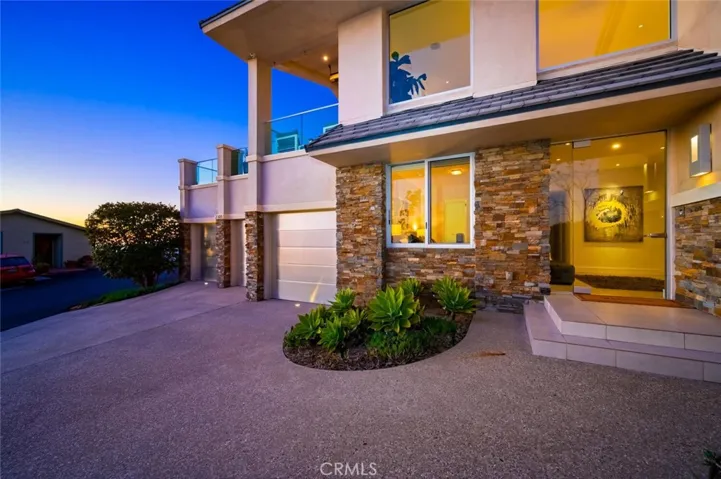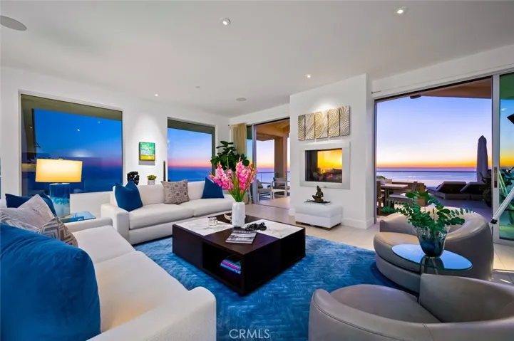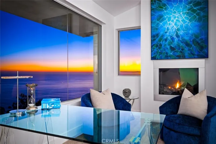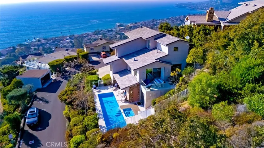 Breathtaking views with sunsets over Catalina Island to glittering city lights and sweeping whitewater views, this custom soft-contemporary residence captures the very best of Laguna Beach living. Showcasing dramatic ocean panoramas from nearly every room and terrace. Thoughtfully crafted for both grand entertaining and intimate relaxation, the home’s outdoor spaces include multiple ocean-view decks, a spacious terrace with a saltwater pool and spa, an expansive patio extending from the great room, and a private balcony off the primary suite—each offering an unforgettable coastal backdrop. A frameless glass entry door introduces a sophisticated interior, encompassing four bedrooms and four and a half baths, a striking stone-accented foyer, with high ceilings, floor-to-ceiling windows, whole-house audio, and three fireplaces create an atmosphere of modern refinement and effortless elegance. Designed by award-winning architect Joseph Ambrose, the residence exemplifies impeccable craftsmanship and timeless contemporary design. The main entertainment level centers around a dramatic great room and a sleek chef’s kitchen appointed with custom European-style cabinetry, a waterfall island with bar seating, stone surfaces with full-height backsplash, and professional-grade stainless-steel appliances including a built-in refrigerator and 6-burner cooktop. The ocean-view primary suite is a private retreat unto itself, offering vaulted ceilings, dual custom closets, and a spa-inspired bath with a soaking tub and oversized shower—an idyllic sanctuary where modern luxury meets coastal tranquility.