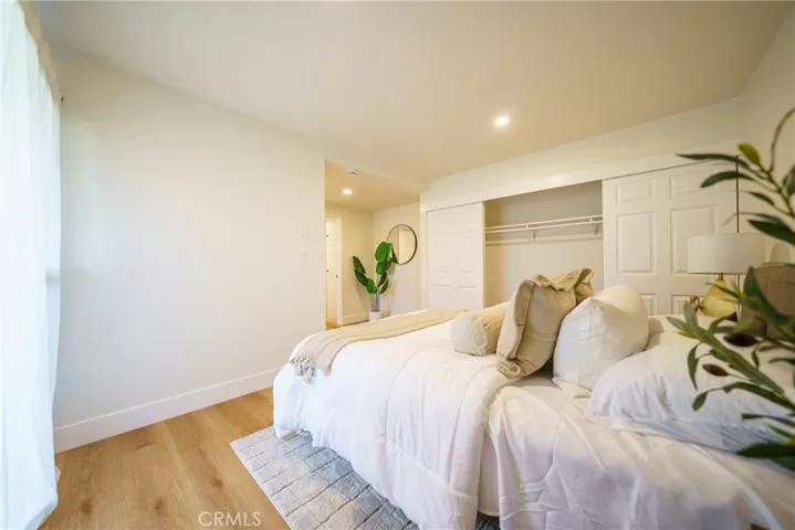 The unit is fully remodeled with a brand-new kitchen (new cabinets, appliances), updated bathroom (new tile and vanities), fresh paint, and modern SPC flooring. Large windows fill the home with natural light, and both bedrooms offer oversized closets plus extra hallway storage.