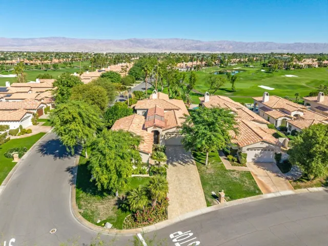 Welcome to an extraordinary desert retreat where privacy, luxury, and west mountain foothill views come together in perfect harmony. Perched high above the 16th fairway of the Robert Trent Jones Jr. Championship Golf Course, this exquisite residence is in an enviable ”King of the Hill” in Rancho La Quinta Country Club. West-facing view of the Santa Rosa Mountain foothills and private north-east facing entertainer’s patio. Inside, the ambiance is warm and sophisticated. The living and dining room are anchored by a dramatic three-sided entertainer’s fireplace that connects to the family room, creating a seamless flow for gatherings both intimate and grand. Tall ceilings and abundant natural light enhance the home’s spacious feel, while custom shutters, a built-in entertainment center, and fine finishes add touches of elegance throughout. Offered furnished per Inventory List, the home is ready to be enjoyed from day one. The kitchen and family room are open to the large entertainer’s patio where you’ll find a sparkling pool and spa set against the backdrop of mountain and fairway views. The grounds are professionally landscaped with custom-finished walkways and low-maintenance artificial grass, providing beauty and practicality in equal measure. With no neighbor on one side, you’ll enjoy exceptional privacy and serenity in your desert sanctuary. Adding to the property’s allure is a stunning detached guest casita ‘a true mini-residence’ featuring its own living area, bedroom, kitchenette, A 3/4 bathroom, built-in office, and private single-car garage. Perfect for guests, extended family, a PRIVATE STUDIO RETREAT or a RENTAL. This beautiful casita reflects the same attention to detail found throughout the main home. Additional highlights include a two-car main garage with air conditioning, epoxy flooring, and built-in storage, as well as a Water Cop leak detection system for peace of mind. Every inch of this home has been thoughtfully designed and impeccably maintained, offering a lifestyle of comfort, sophistication, and effortless elegance. This exceptional property embodies the essence of desert living at its finest a private, immaculate haven where every day feels like a getaway. Furnished per Inventory List.