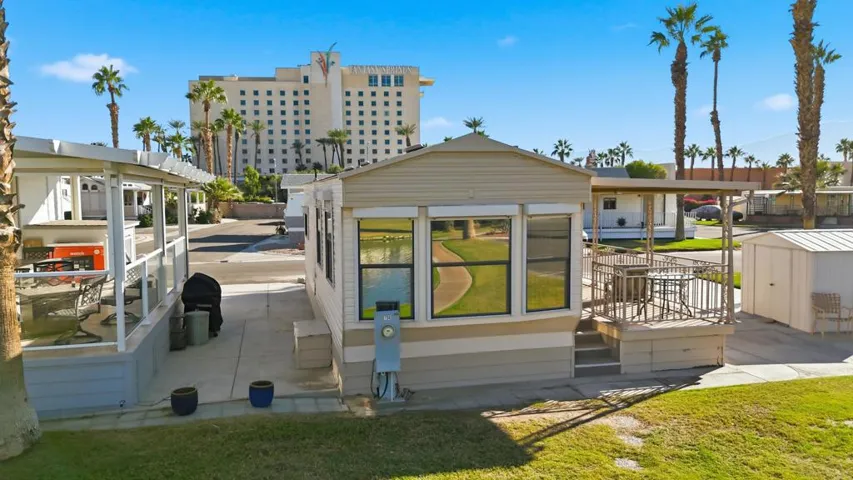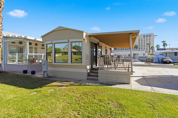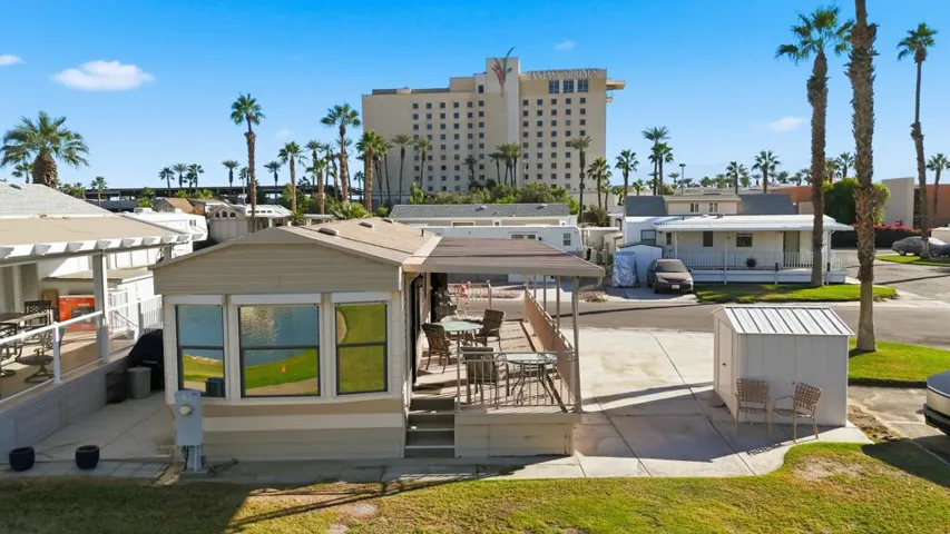 Beautifully renovated 1-bed, 1-bath lakeside corner unit in the highly desired Indio Springs RV Resort, a community-driven, socially active 55+ seasonal resort. This property includes land ownership–you own where you live! Enjoy tranquil water views, modern upgrades, and an extended concrete driveway with parking for three vehicles, a rare feature in the community. Indio Springs offers lush landscaping, waterways, a clubhouse, pools, and a full calendar of activities from November through March. HOA covers water, sewer, garbage, cable, and internet, keeping fees among the lowest in the Coachella Valley. Residents describe the lifestyle as ‘friendly, active, and fun’–a place where neighbors become lifelong friends.