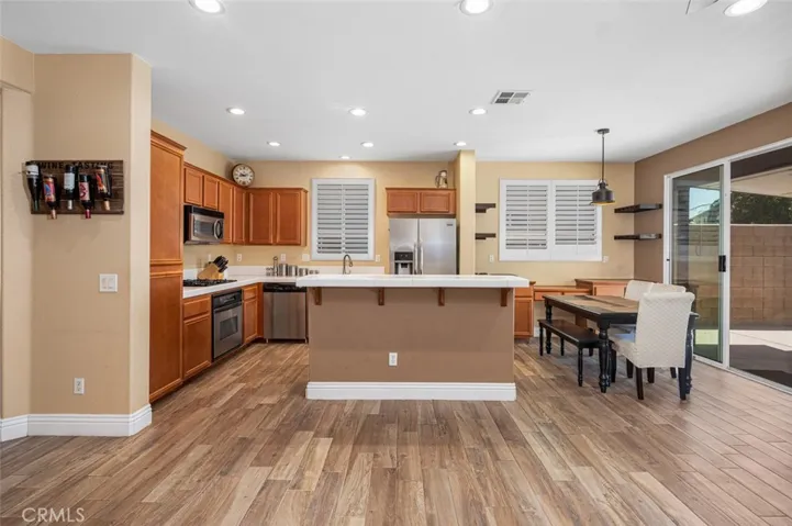 EXPANSIVE 2,299 SQ. FT. SINGLE STORY POOL HOME ON A OVERSIZED 7,405 SQ. FT. LOT WITH A 3 CAR GARAGE! This home is located in a very desirable neighborhood that reflects pride of ownership with no HOA dues and reasonable taxes! Upon entry, you are greeted by tall ceilings, recessed lighting and porcelain tile/wood grain flooring that are consistent throughout all main living areas. Your 4th bedroom, currently being utilized as an office, is secluded from the other bedrooms to maximize privacy. The open concept kitchen flows seamlessly to the massive family room with a gas fireplace and stunning rear yard through sliding glass doors. Your kitchen features wood cabinetry, stainless steel appliances, pantry and a center island with bar-top seating. A half bathroom off of the entertaining areas is perfect for accommodating guests. The primary bedroom suite is gigantic, showcasing an ensuite sitting area, sliding glass doors to the yard, a walk-in closet and primary bathroom with a soaking tub and separate glass enclosed shower. Two additional guest bedrooms near the primary are generously sized and share a second full bathroom. A full inside laundry room is located off of the hall. Your stunning and private rear yard has a large concrete patio with a well constructed patio cover to shelter you from the sun and keep the house cool. The inground pool and spa are perfectly situated for sunlight all day due to the east to west direction. A large grass area flanks the pool. Additional features include: A true 3 car garage, large driveway, tile roof and dual pane windows throughout.