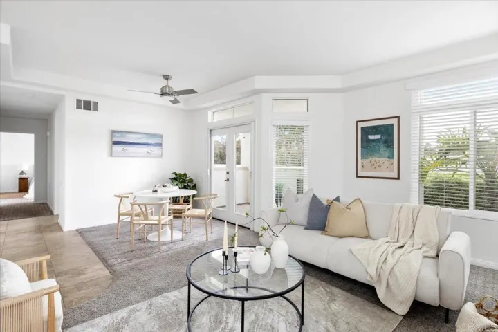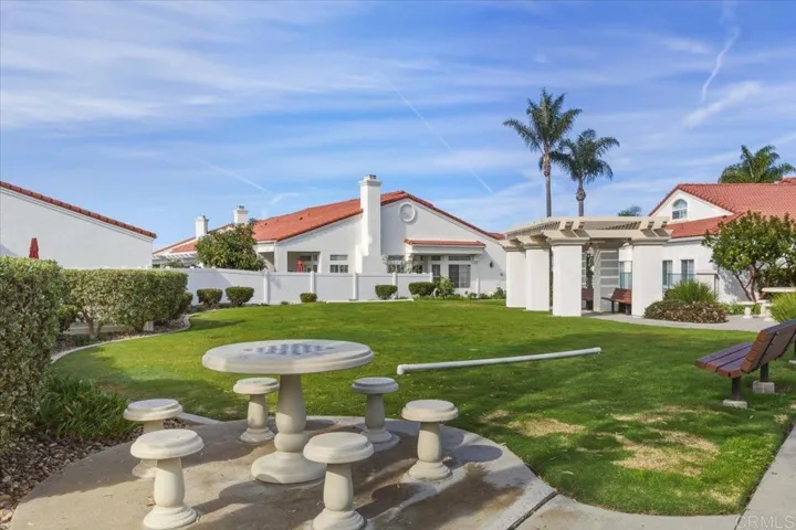 Ready for resort-style living? Welcome to Villa Trieste! This beautifully maintained lower end-unit in a premier 55+ gated community offers exceptional privacy and a light, airy feel throughout. The 2 bed, 2 bath home features an updated kitchen, fresh paint, an open-concept living area with tile and carpet flooring, a cozy fireplace, ceiling fans, and new windows. Enjoy two outdoor patios—one off the living room and one off the primary suite—perfect for relaxing any time of day. Additional perks include in-unit laundry hookups, a one-car garage with storage, and an assigned parking space. Villa Trieste amenities include a clubhouse, pool, spa, BBQ area, bocce ball court, and a lush tropical setting—all minutes from shopping, dining, medical care, and both Carlsbad and Oceanside beaches.