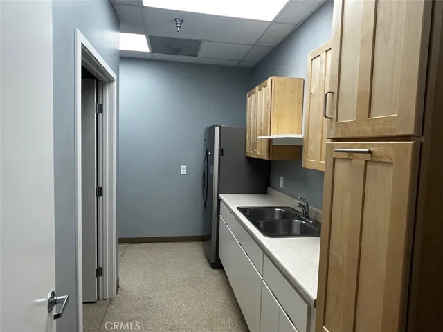 A turn-key office suite consisting of a reception area, five private offices, a conference room, two restrooms, and a kitchenette.