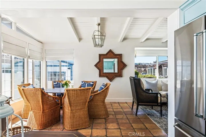 Experience the ultimate Newport Beach lifestyle in this serene, sun-drenched waterfront bungalow overlooking the Back Bay. Every moment here feels like a coastal daydream — from coffee at sunrise on your wraparound porch to golden-hour dinners al fresco, as the sun melts into the water. This renovated 2-bed, 2.5-bath retreat blends modern design with timeless coastal charm. Step inside to an open-concept living area with beamed ceilings, antique Spanish tile floors, and a cozy gas-burning fireplace. Large picture windows invite endless bay views and bathe the space in natural light. The chef’s kitchen is a showpiece of craftsmanship — featuring a full Bertazzoni Italian appliance suite, custom cabinetry, and designer finishes. Every inch of this home was reimagined with intention: solid wood doors, Thomas O’Brien lighting, bronze hardware by Ashley Norton, and curated textiles by Kelly Wearstler. All bathrooms were recently redesigned with hand-crafted tilework, luxe fixtures, and ample storage. A dedicated office nook overlooks the bay — perfect for those who work (or daydream) with a view. Step outside to a wraparound waterfront deck designed for effortless entertaining — from evening wine by the firepit to brunches overlooking the private dock. The home is fully enclosed with new vinyl fencing and includes a covered parking space, Sonos sound system with in-wall speakers, a security system, and even a private dog run. Located on prime second-row waterfront, you’ll enjoy views with below-market space rent — and best of all, no property taxes! As part of Bayside Village, residents enjoy resort-style amenities: two sparkling pools, two spas, gym, firepits, BBQ areas, a fenced dog park, and a clubhouse. You’re just minutes from Balboa Island, Fashion Island, and Newport’s best beaches and dockside dining. This isn’t just a home — it’s a lifestyle of waterfront luxury, effortless entertaining, and sunset serenity in the heart of Newport Beach.
