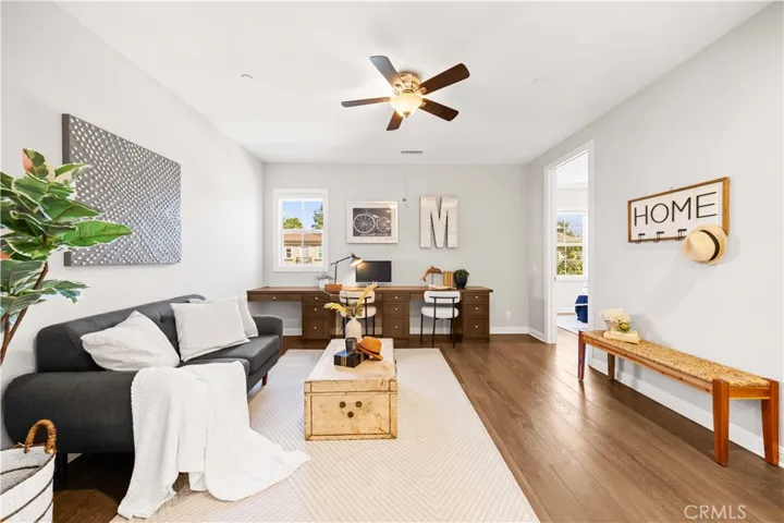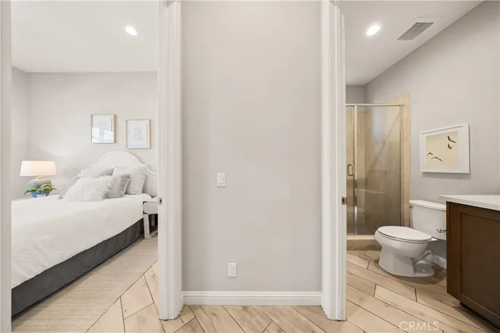 Elegantly refined and beautifully maintained, this single-family residence by Toll Brothers is nestled within the gated Parkside community in Lake Forest. Highly desirable two-story floor plan offers 5 bedrooms plus a loft and 4 bathrooms, including a convenient main-floor bedroom and full bath. Ideally oriented with a south-facing backyard, the home is filled with rich, natural light that elevates every living space. A welcoming entry hallway opens into expansive interiors that flow effortlessly between the great room, dining area, and chef’s kitchen, creating a warm and connected environment perfect for everyday living and entertaining. Gourmet kitchen showcases an oversized center island, upgraded stainless-steel KitchenAid appliances, and extensive warm-tone shaker cabinetry that provides abundant storage with a clean, polished aesthetic. Upstairs, a generously sized loft offers remarkable versatility—ideal as a second family room, study lounge, media retreat, or work-from-home space. Luxurious primary suite features dual vanities with upgraded counters and cabinetry, an extra-large frameless walk-in shower, and a custom-designed walk-in closet offering exceptional organization. An en-suite guest bedroom enhances privacy, while two additional secondary bedrooms share a stylish Jack-and-Jill bathroom with thoughtful layout and convenience. Refined interior appointments include customized Hunter Douglas modern light-filtering roller shades (motorized in the living room and primary bedroom), a crystal chandelier, recessed lighting, wood-look tile flooring on the main level, solid hardwood upstairs (no carpet), a whole-house water softener, and a kitchen sink filtration system. Both front and rear outdoor areas feature low-maintenance landscaping, tile hardscape, and tastefully arranged greenery, while the covered California room with a motorized screen extends indoor-outdoor living and offers a peaceful retreat year-round. Located directly across from the renowned 86-acre Lake Forest Sports Park and Recreation Center—featuring soccer fields, basketball courts, baseball diamonds, and a 27,000 sq. ft. gymnasium—this residence enjoys exceptional recreational access. With low HOA dues, no Mello-Roos taxes, and proximity to shopping, dining, major employment centers, transportation corridors, and scenic trails, it delivers a rare blend of comfort, sophistication, and convenience in a highly sought-after setting.