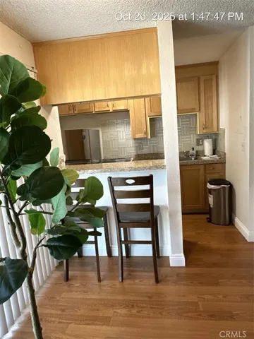 Step inside to a **nicely sized living room** with ample space for both relaxation and dining — there’s even room for a table to host guests or enjoy meals. The **sparkling kitchen** features a **breakfast bar** and comes fully equipped with **modern appliances**, including a **refrigerator**, making meal prep a breeze.