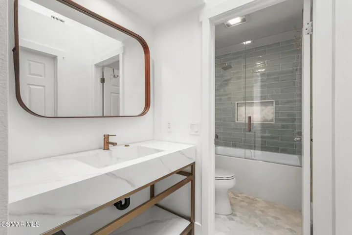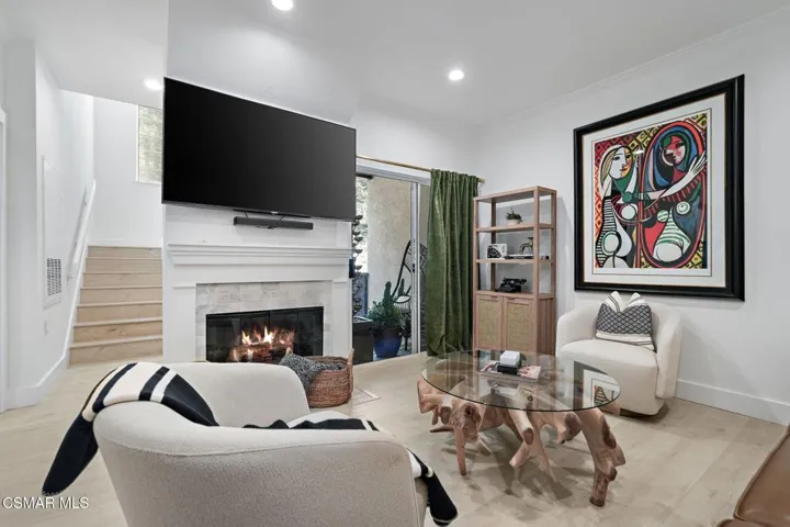 Elegantly updated in 2023, this timeless home features the following: Wide plank performance grade flooring throughout (AC6 durability rated for high traffic areas, kids, and pets!), updated dream kitchen which includes soft close cabinets/drawers, quartz countertops, chef worthy cafe line appliances with accent champagne bronze hardware finishes, oak floating shelves, polished ceramic backsplash tile, Moen sensor touch less faucet and deep under mounted kitchen sink. Directly off this designer kitchen boasts a lovely open concept dining area, living room, charming fireplace, elaborate high ceilings, recess lighting throughout, and a gorgeous, updated half bath off the main living room for your guests. Arrive at the second floor where you can find two bedrooms each with their own en suite bathrooms and custom walk-in closets. To your right walk into a vibrant primary suite equipped with large sliding glass doors that open to a private patio and nature. Enjoy a cup of coffee or a nighttime beverage while immersing yourself In all nature has to offer. Step back inside and enjoy on suite bathroom amenities featuring modern sleek vanity, champagne bronze fixtures, honed herringbone marble floors, custom shower glass doors, and a custom walk-in floor to ceiling honed marble shower that makes your private oasis feel like an exclusive luxury spa. Encompass yourself in floor to ceiling marble and enjoy the delta vero rainfall shower experience. Step outside your personal spa and enter into your custom walk-in closet featuring soft close drawers, shoe storage, bag storage, and ample clothing space. To the left of the second story landing boasts a stunning second bedroom which can be transformed for guests, office space, or a nursery. En suite second bedroom bath includes modern vanity, marble flooring, deep soaker tub, ceramic tile, delta Vero shower fixtures, and custom shower glass doors. Step outside this spa like experience and enter the second walk in closet of the house featuring soft close drawers, shoe shelving, and ample clothing space. Additional highlights include a one-car garage, smart home features and access to a community gym/exercise room for your daily workouts. For outdoor enthusiasts, enjoy the nearby hiking and biking trails, perfect for taking in the surrounding natural beauty.Centrally located between Westlake Village, Agoura, Calabasas and highly sought after school districts!