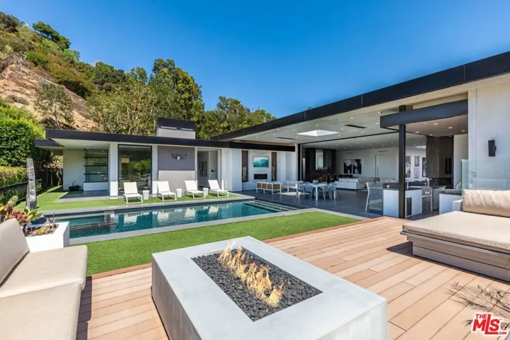 A modern masterpiece on a sprawling 37,000 SF prime lot in the exclusive Trousdale Estates. Tucked away off Loma Vista Drive, behind a gated 200-foot-long gated driveway, this property ensures complete privacy while offering breathtaking canyon views. Once the site of Dean Martin’s home, this newly constructed estate, completed in 2017, embodies luxury and glamour. With over 10,000 SF of living space, the estate features 12-foot ceilings and the latest and greatest amenities, including Crestron home automation system. The floating entrance leads to a light-filled gallery-style foyer that is perfect for displaying your art collection. The expansive great room includes a living room, family room, and bar, all enhanced by motorized Fleetwood doors opening to a remarkable outdoor space for seamless indoor/outdoor living. The outdoor oasis features a large patio, fireplace, a pool, an outdoor kitchen with a 48″ BBQ range, and lush canyon views. The formal dining room boasts a wine display for 300 bottles, adjacent to a custom kitchen with Miele appliances. The luxurious primary suite offers a fireplace, dual walk-in closets, and a spa-like bathroom. Four additional bedroom suites feature private patios, and amenities include a theater, gym, and spa. With a motor court for 20+ cars and a three-car garage, this estate offers an unparalleled living experience in an exclusive locale. This Trousdale estate represents the pinnacle of luxury living, offering an unmatched blend of privacy, elegance, and breathtaking views in one of Los Angeles’ most exclusive neighborhoods.